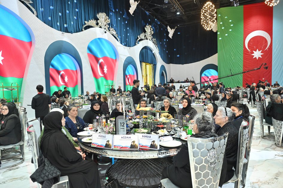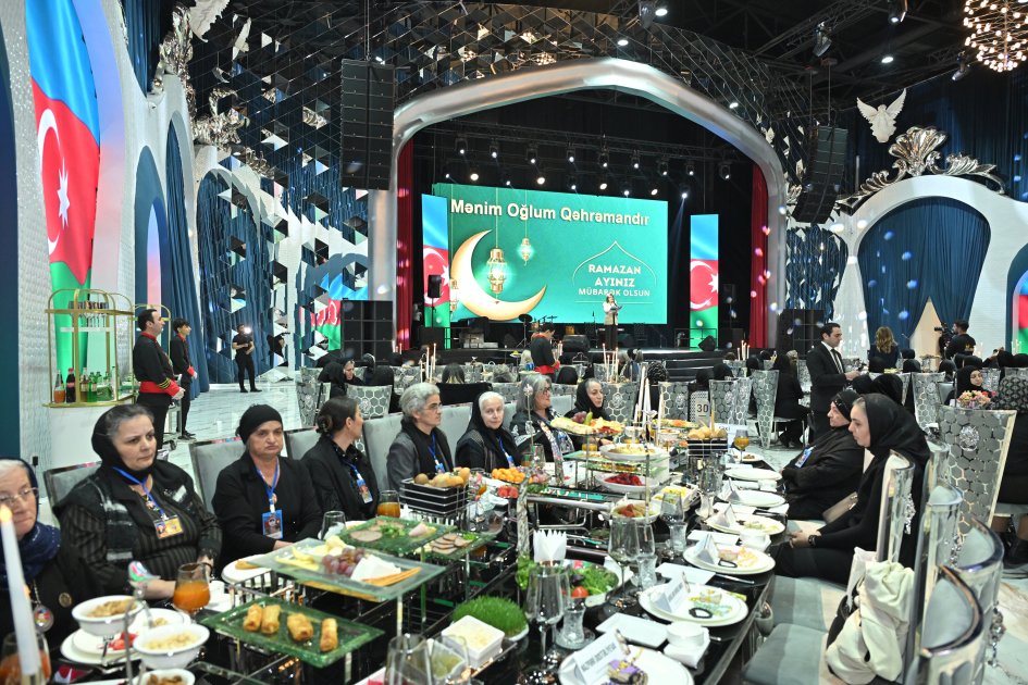 Arzu Əliyeva iftar məclisində iştirak edib. Ölkəmizin müxtəlif rayonlarından şəhid valideynlərinin, müharibə iştirakçılarının, ictimaiyyət nümayəndələrinin dəvət olunduğu iftar mərasimində “Qurani-Kərim”dən ayələr oxunub, Azərbaycanın müstəqilliyi və ərazi bütövlüyü uğrunda mübarizədə şəhid olan qəhrəman Vətən oğullarının ruhuna dualar edilib.