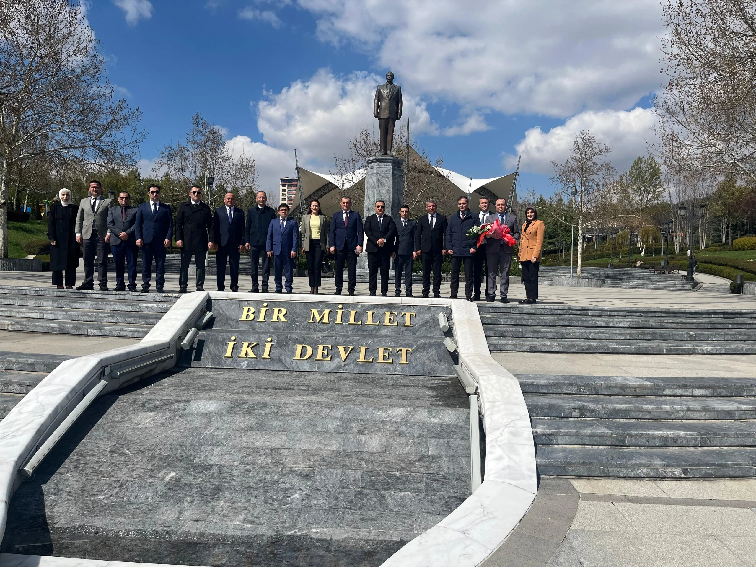 İlk olaraq Azərbaycan nümayəndə heyəti Ankaradakı Heydər Əliyev Parkında Ulu Öndərin abidəsini ziyarət edib, önünə gül dəstəsi qoyub.