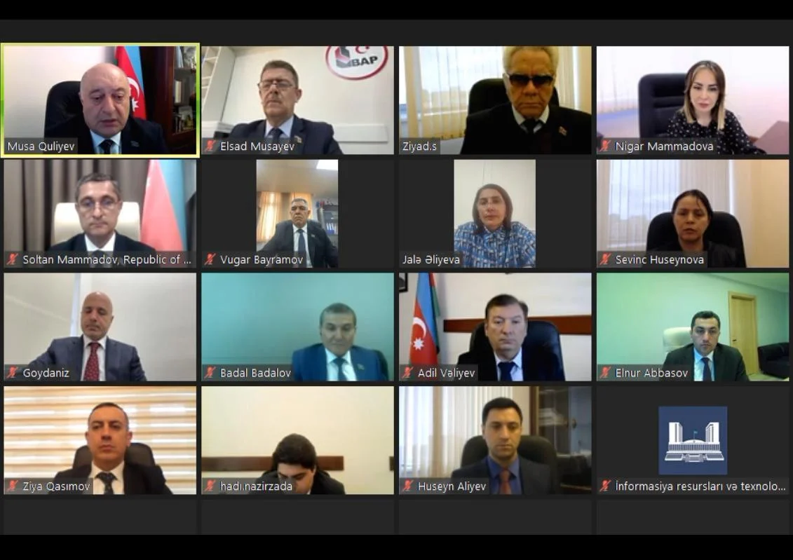 Onlayn iclasda komitənin sədr müavini Elşad Musayev, üzvləri Bədəl Bədəlov, Əziz Ələkbərov, Sevinc Hüseynova, Göydəniz Qəhrəmanov, Vüqar Bayramov və digər rəsmi şəxslər iştirak ediblər.