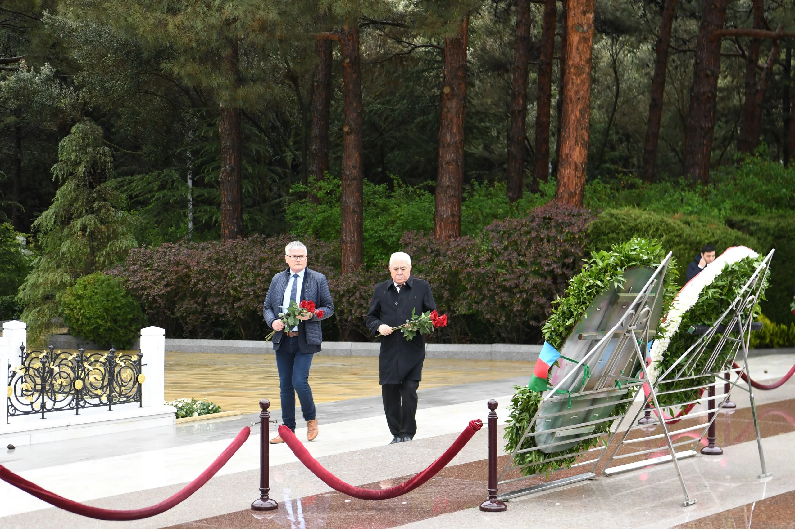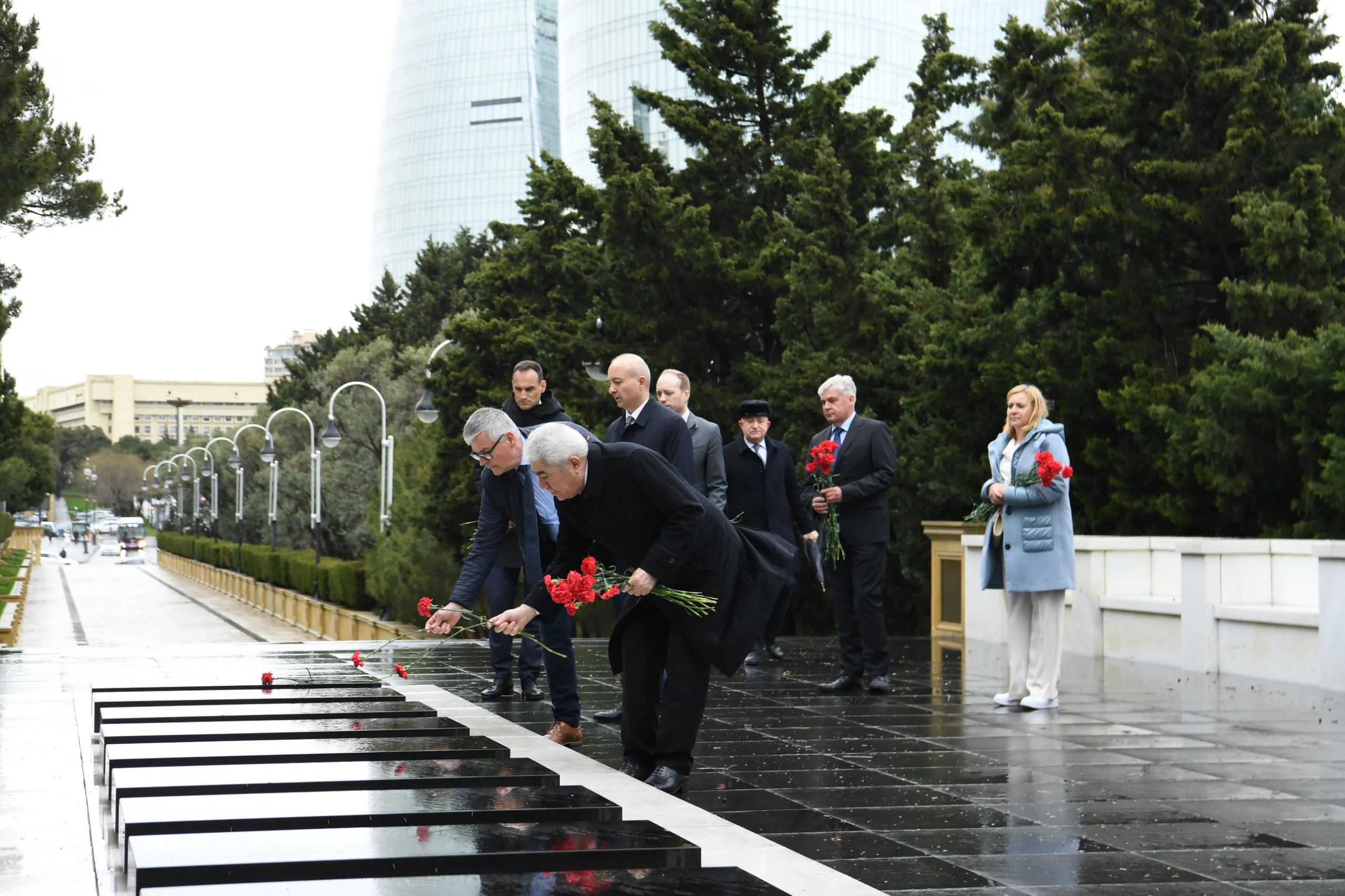 Sonra nümayəndə heyəti Şəhidlər xiyabanına gələrək, ölkəmizin azadlığı və suverenliyi uğrunda mübarizədə canlarından keçmiş qəhrəman Vətən övladlarının xatirəsini ehtiramla anıb, məzarları üzərinə tər çiçəklər düzüb, “Əbədi məşəl” abidəsini ziyarət edib.