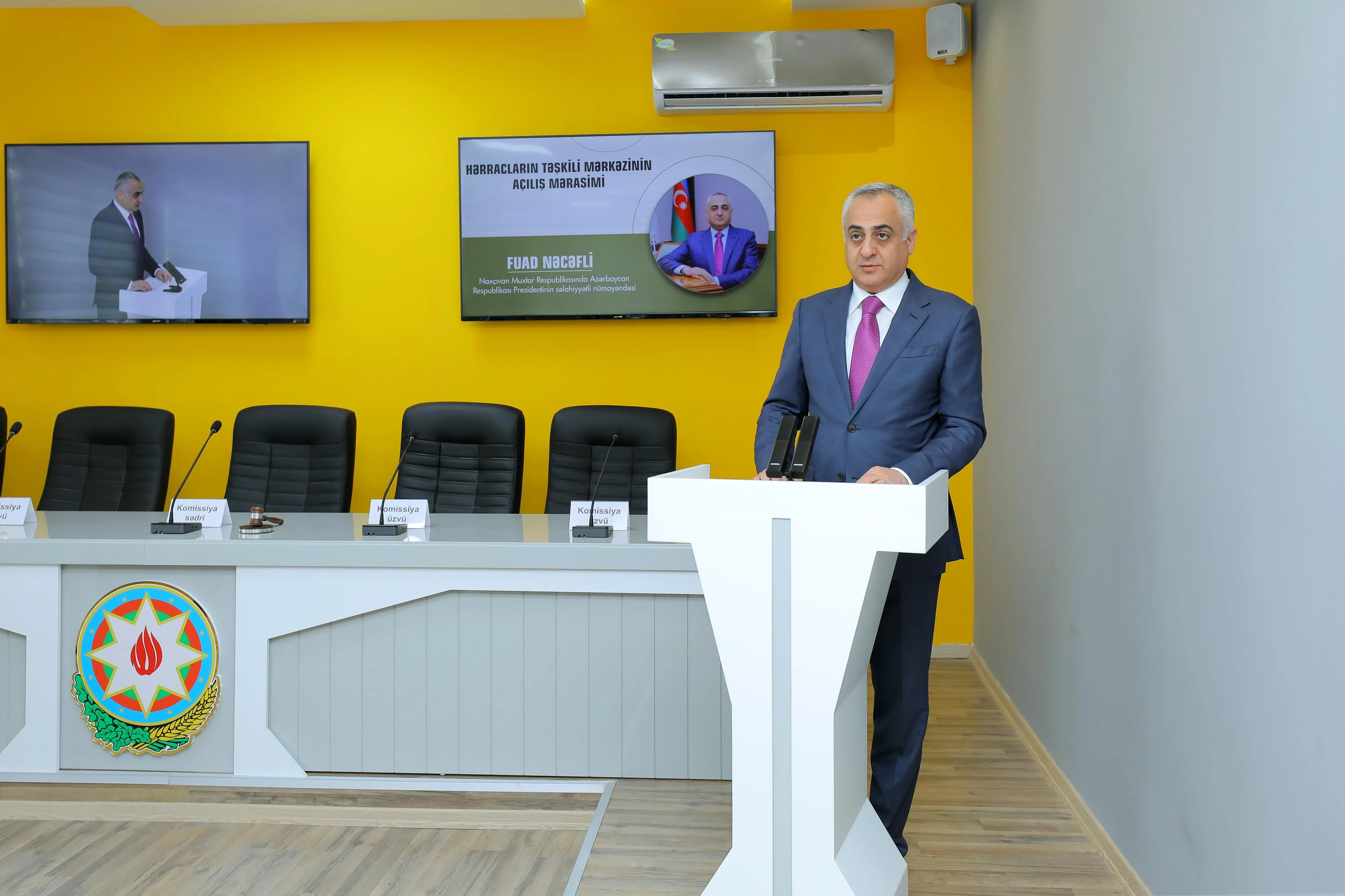 Hərracların Təşkili Mərkəzinin açılış tədbirində Naxçıvan Muxtar Respublikasında Azərbaycan Respublikası Prezidentinin səlahiyyətli nümayəndəsi Fuad Nəcəfli Azərbaycanın davamlı inkişaf modelinin tərkib hissəsi olan Naxçıvanda həyata keçirilən sistemli islahatların və sosial-iqtisadi layihələrin iqtisadi münasibətlərin müasirləşdirilməsinə və şəffaflığın təmin olunmasına xidmət etdiyini vurğulayıb. Bildirib ki, bu siyasətin növbəti təzahürü olan “Hərracların Təşkili Mərkəzi” publik hüquqi şəxsin yaradılması da məhz bu məqsədlərə yönəlmiş əhəmiyyətli addımdır. Mərkəzin fəaliyyəti muxtar respublikada şəffaf iqtisadi mühitin formalaşmasına, sahibkarlığın inkişafına və səmərəli idarəetmənin təmininə mühüm töhfə verəcək.