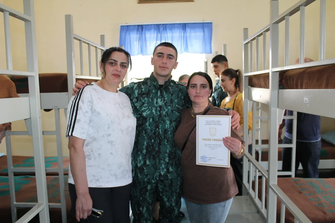 Sonda xidmətdə fərqlənmiş bir qrup hərbi qulluqçuya valideynlərin iştirakı ilə fəxri fərman təqdim olunmuş, xatirə fotoşəkili çəkilmişdir.