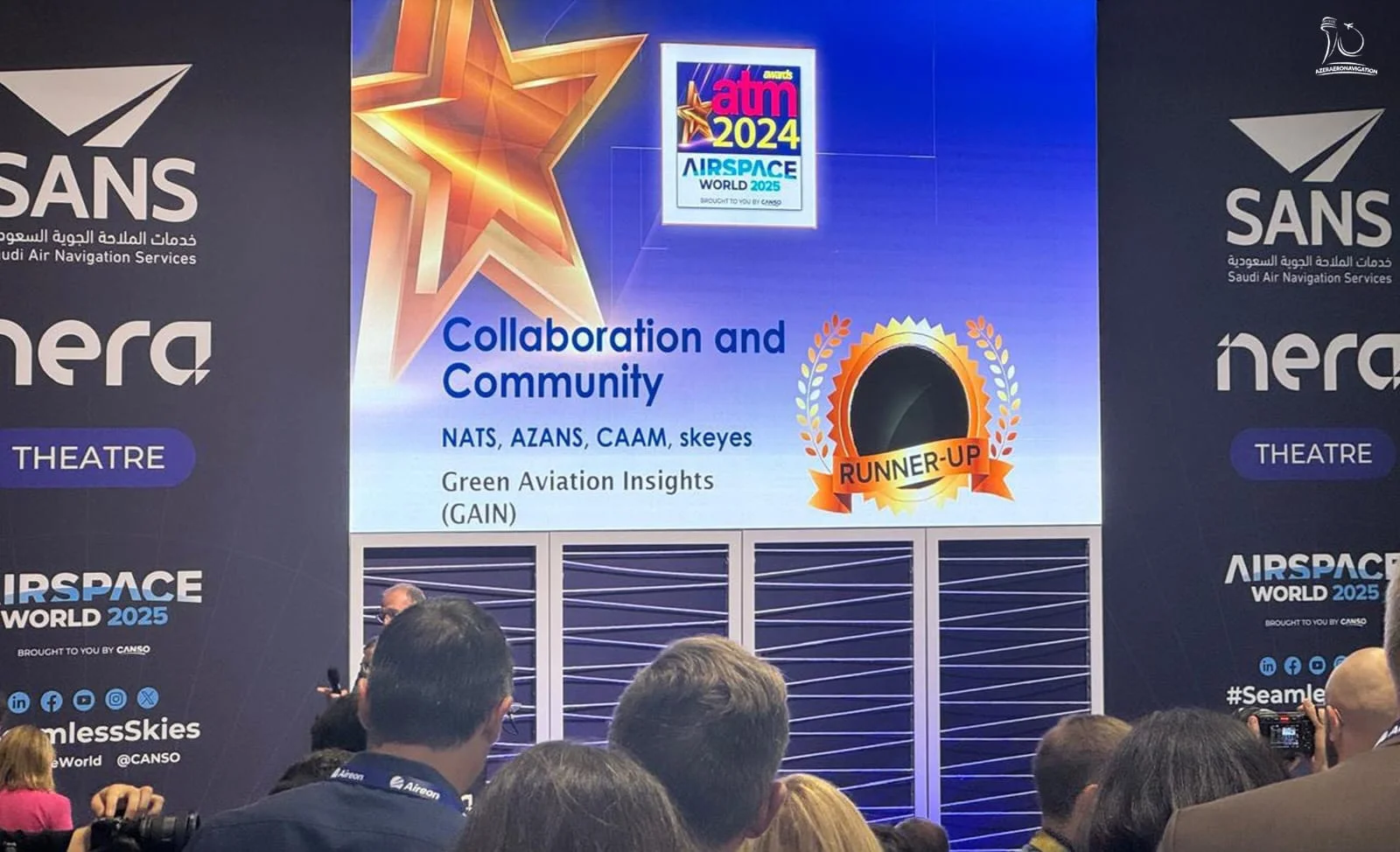 AZANS bu uğuru "NATS Green Aviation Insights" (GAIN) layihəsi çərçivəsində əldə edib. NATS (Böyük Britaniya), AZANS (Azərbaycan), CAAM (Malayziya) və "skeyes" (Belçika) kimi aparıcı aeronaviqasiya xidməti təminatçıları ilə birgə həyata keçirilən layihə bu kateqoriyada ikinci yerə layiq görülüb. Birinci yeri isə “Collaboration and Community” nominasiyasında pilotsuz uçuş aparatlarının ümumi hava məkanına inteqrasiyası layihəsi ilə ABŞ-nın Federal Aviasiya İdarəsi (FAA) və NASA qazanıb.