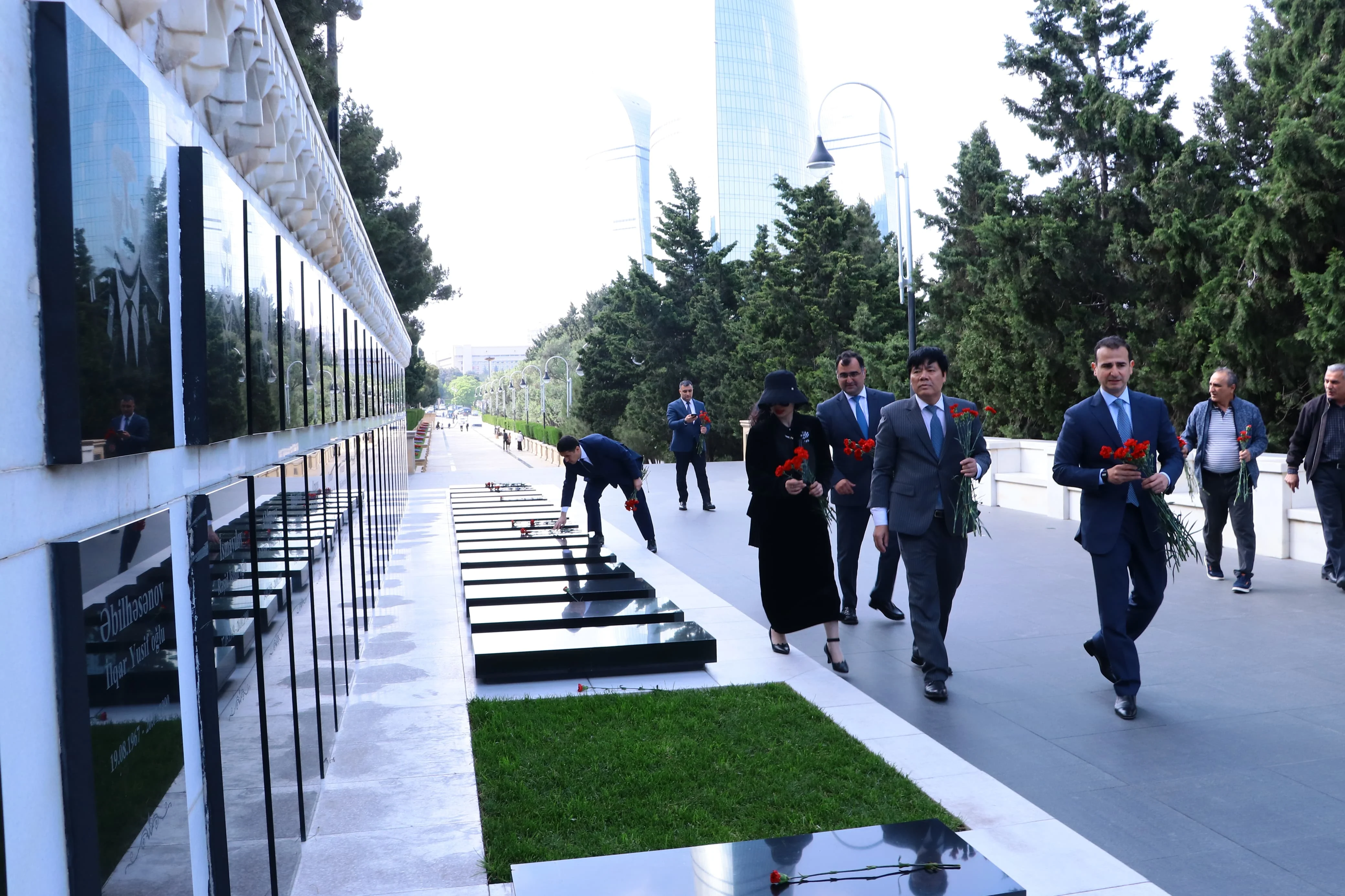 Sonra Şəhidlər xiyabanına gələn qonaqlar ölkəmizin azadlığı və suverenliyi uğrunda mübarizədə canlarından keçmiş qəhrəman Vətən övladlarının xatirəsini ehtiramla anıb, məzarları üzərinə tər çiçəklər düzüb, “Əbədi məşəl” abidəsini ziyarət ediblər.