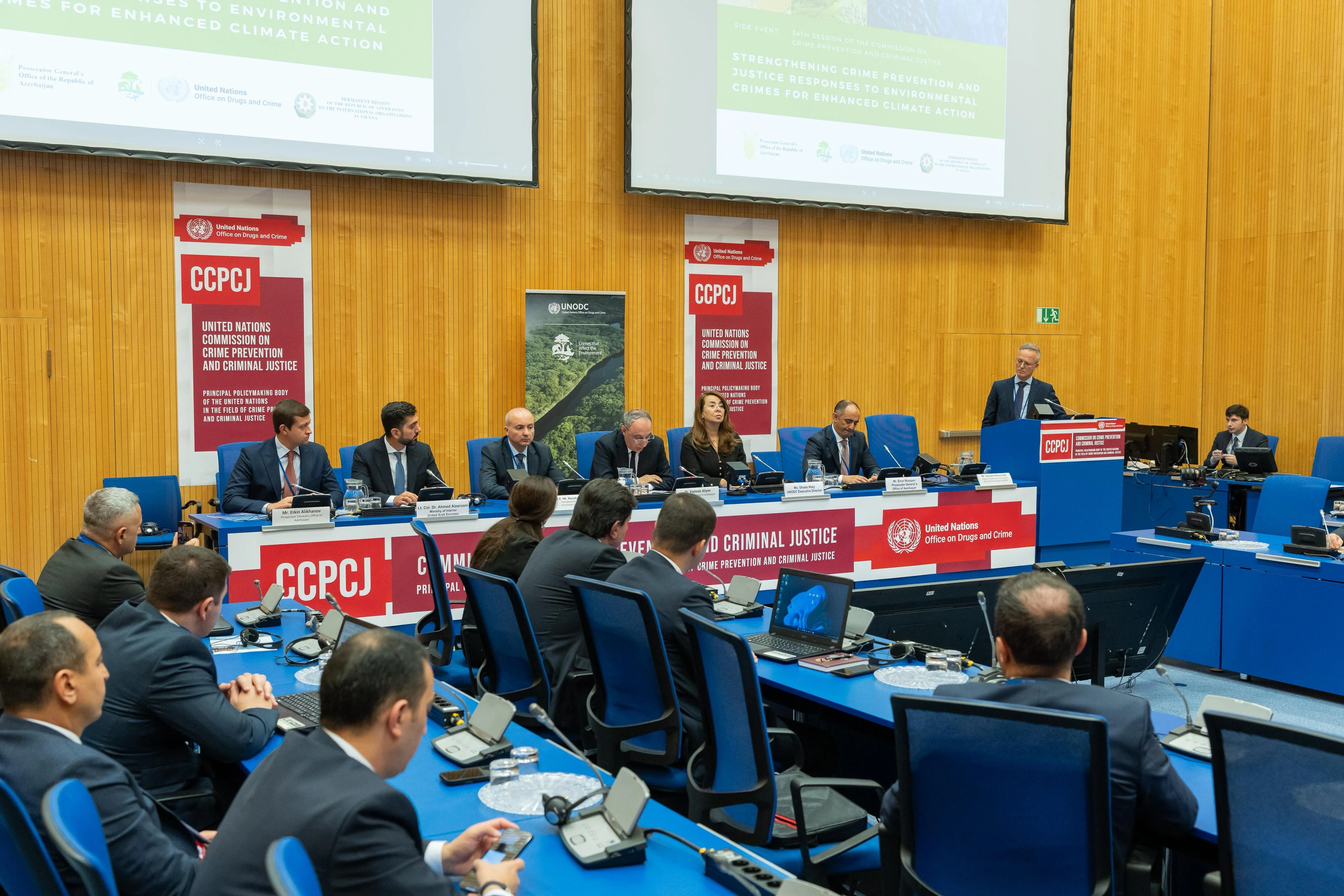Azturkxeber.az xəbər verir ki, Baş Prokurorluq və BMT-nin Narkotiklər və Cinayətkarlıq üzrə İdarəsi (BMTNCİ) arasında əldə olunmuş razılığa əsasən ölkəmizin COP29-da sədrliyi çərçivəsində əldə etdiyi nailiyyətlərin beynəlxalq ictimaiyyətə təqdim olunması məqsədilə Azərbaycanın Avstriyadakı Səfirliyinin dəstəyi ilə BMT-nin qərargahında “İqlim fəaliyyətinin təkmilləşdirilməsi üçün ətraf mühit cinayətlərinə qarşı cinayətin qarşısının alınmasının və ədalət mexanizmlərinin gücləndirilməsi” adlı xüsusi sessiya təşkil edilib.