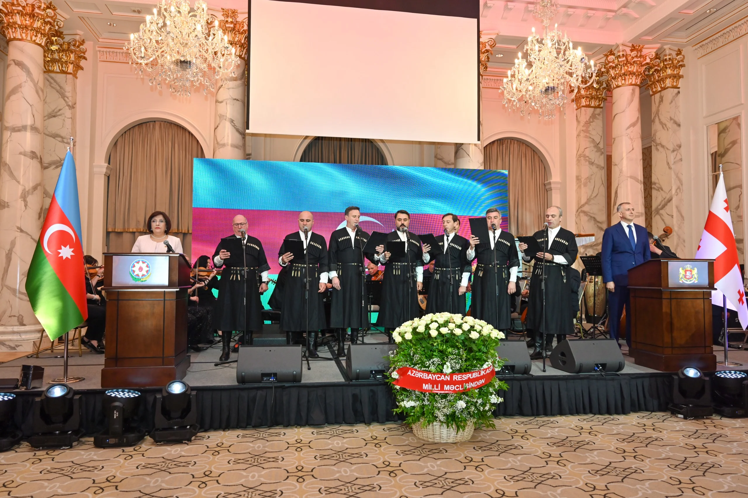 Tədbirdə çıxış edən Milli Məclisin sədri Gürcüstanın Müstəqillik günü münasibəti ilə Azərbaycan Respublikasının Prezidenti cənab İlham Əliyevin səmimi təbriklərini və ən xoş arzularını çatdırıb.
