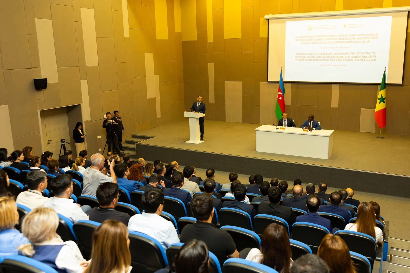 Sonra Azərbaycan Respublikasının Prezidenti yanında Vətandaşlara Xidmət və Sosial İnnovasiyalar üzrə Dövlət Agentliyi ilə Seneqal Respublikasının Dövlət İdarəçiliyi və Dövlət Xidmətlərində İslahatlar Nazirliyi arasında Anlaşma Memorandumunun imzalanma mərasimi keçirilib.