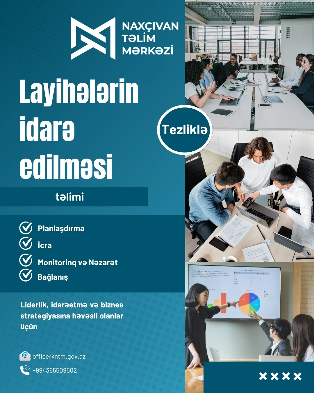 Naxçıvan Təlim Mərkəzi Publik Hüquqi Şəxsi əmək bazarının tələblərinə uyğun olaraq müasir bacarıqların artırılmasına yönəlmiş yeni ödənişli təlim proqramlarına start verib. Bu təlimlər istər dövlət sektorunda çalışan əməkdaşlar, istərsə də şəxsi inkişafına sərmayə qoymaq istəyən gənclər üçün nəzərdə tutulub.