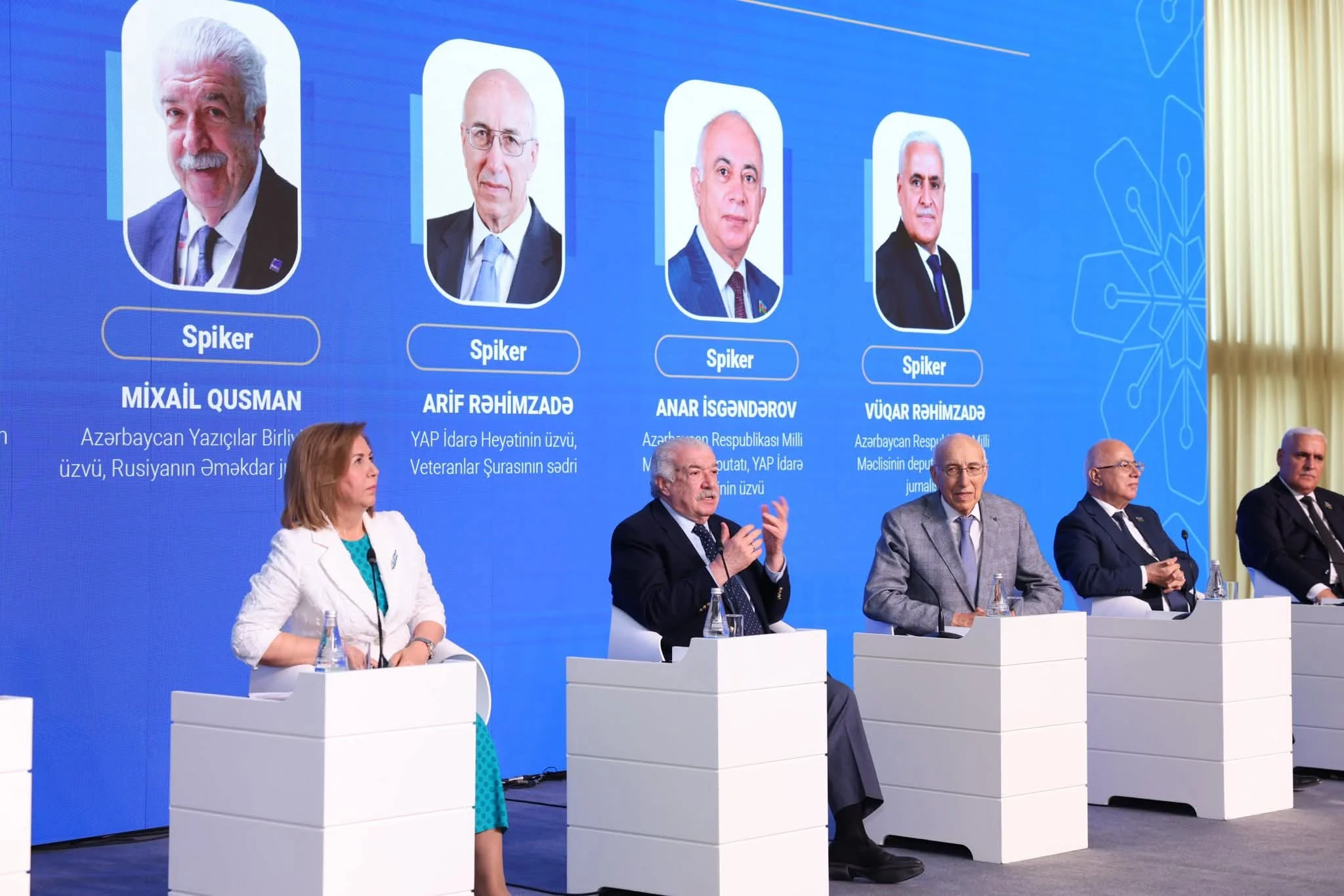 Qeyd edək ki, “Azərbaycan Televiziya və Radio Verilişləri” QSC-nin sədr müavini Rafiq Həşimovun moderatorluğu ilə baş tutan panel sessiyada Azərbaycan Yazıçılar Birliyinin üzvü, Rusiyanın Əməkdar jurnalisti Mixail Qusman, YAP İdarə Heyətinin üzvü və Veteranlar Şurasının sədri Arif Rəhimzadə, Milli Məclisin deputatları - YAP İdarə Heyətinin üzvü Anar İsgəndərov və əməkdar jurnalist Vüqar Rəhimzadə çıxış edərək, Ümummilli Lider Heydər Əliyevin Azərbaycan mətbuatının tarixi inkişaf yoluna verdiyi töhfələr, söz və ifadə azadlığının təmin olunması, eləcə də media nümayəndələrinin peşəkarlığının artırıması sahəsində göstərdiyi müstəsna xidmətlərini diqqətə çatdırıblar.