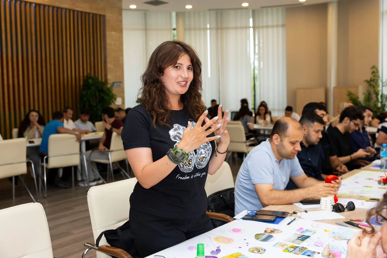 Təlimin gedişində iştirakçılar “Biz birlikdə güclüyük” devizi ilə “Komanda işində birlik!" mövzusunda art terapiya seansında bir araya gəliblər.