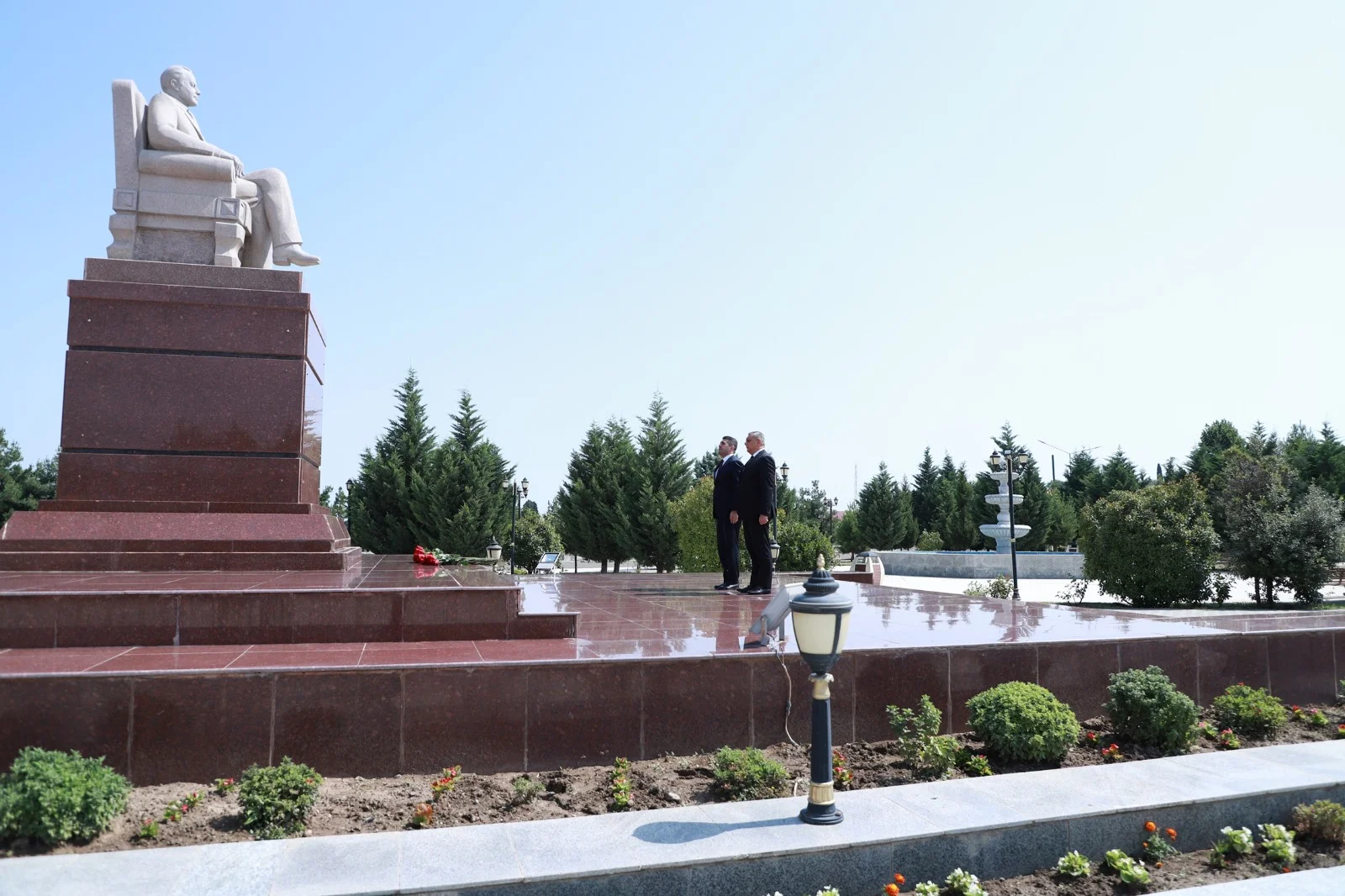 Qəbuldan əvvəl ümummilli lider Heydər Əliyevin abidəsi ziyarət edilərək önünə gül dəstəsi qoyulub, əziz xatirəsi ehtiramla yad edilib.