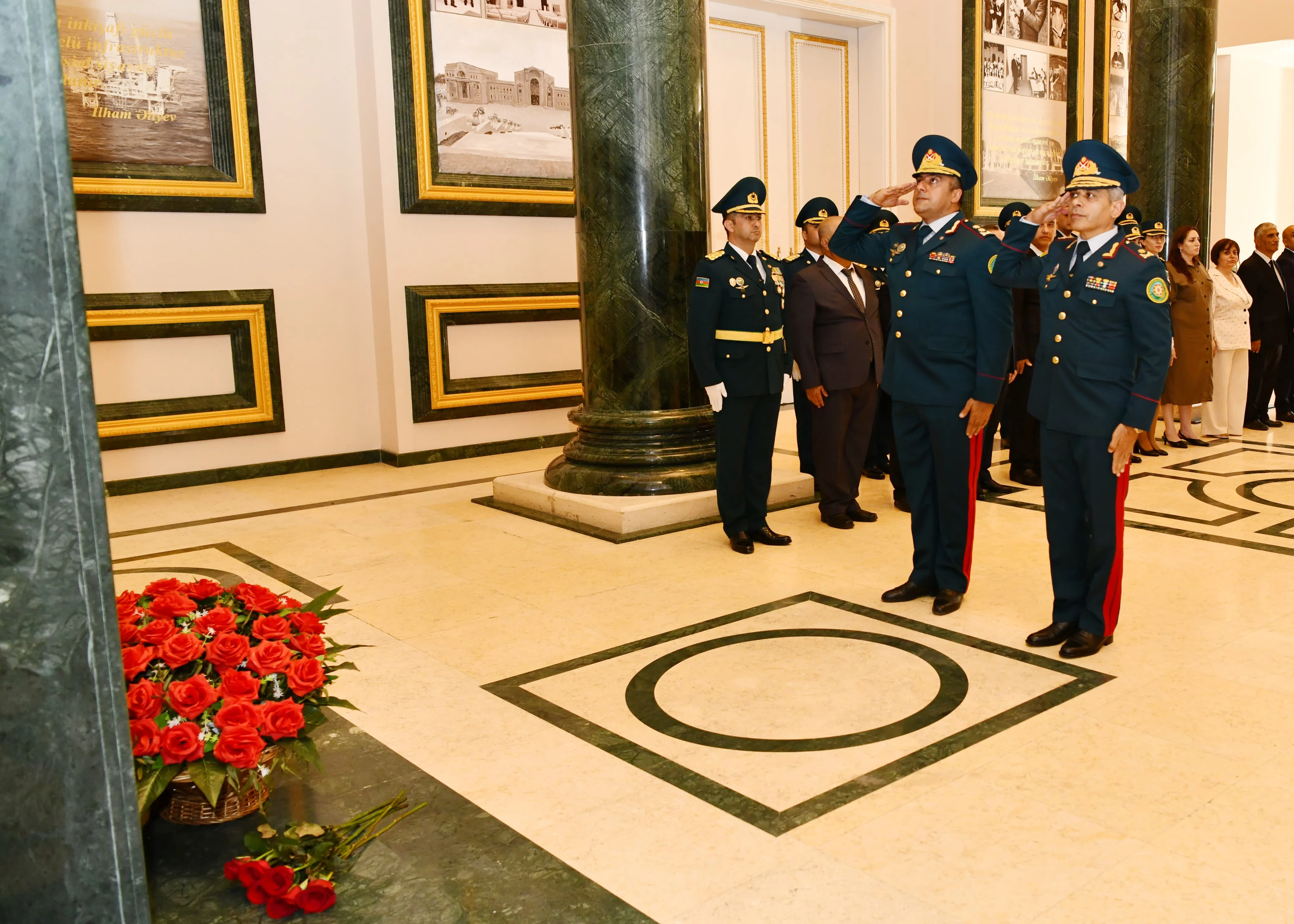 Döyüş Bayrağı mərasim yerinə gətirilərək Dövlət Himni səsləndirilmiş, Ulu Öndər Heydər Əliyevin və ərazi bütövlüyümüz uğrunda canlarını fəda etmiş şəhidlərimizin əziz xatirəsi bir dəqiqəlik sükutla yad edilmişdir.