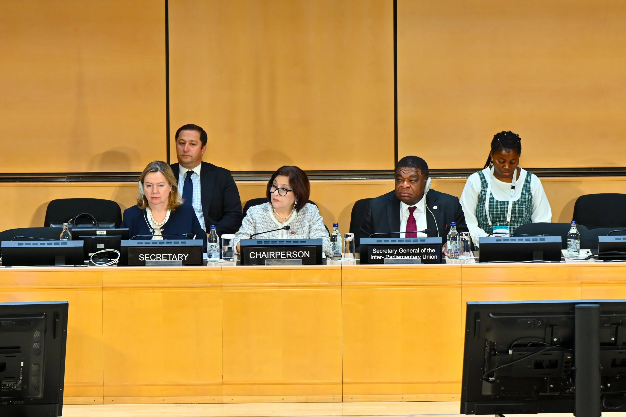 Milli Məclisin sədri Sahibə Qafarova Parlament Sədrlərinin 6-cı Dünya Konfransının ikinci günündə ümumi müzakirələrə sədrlik edib