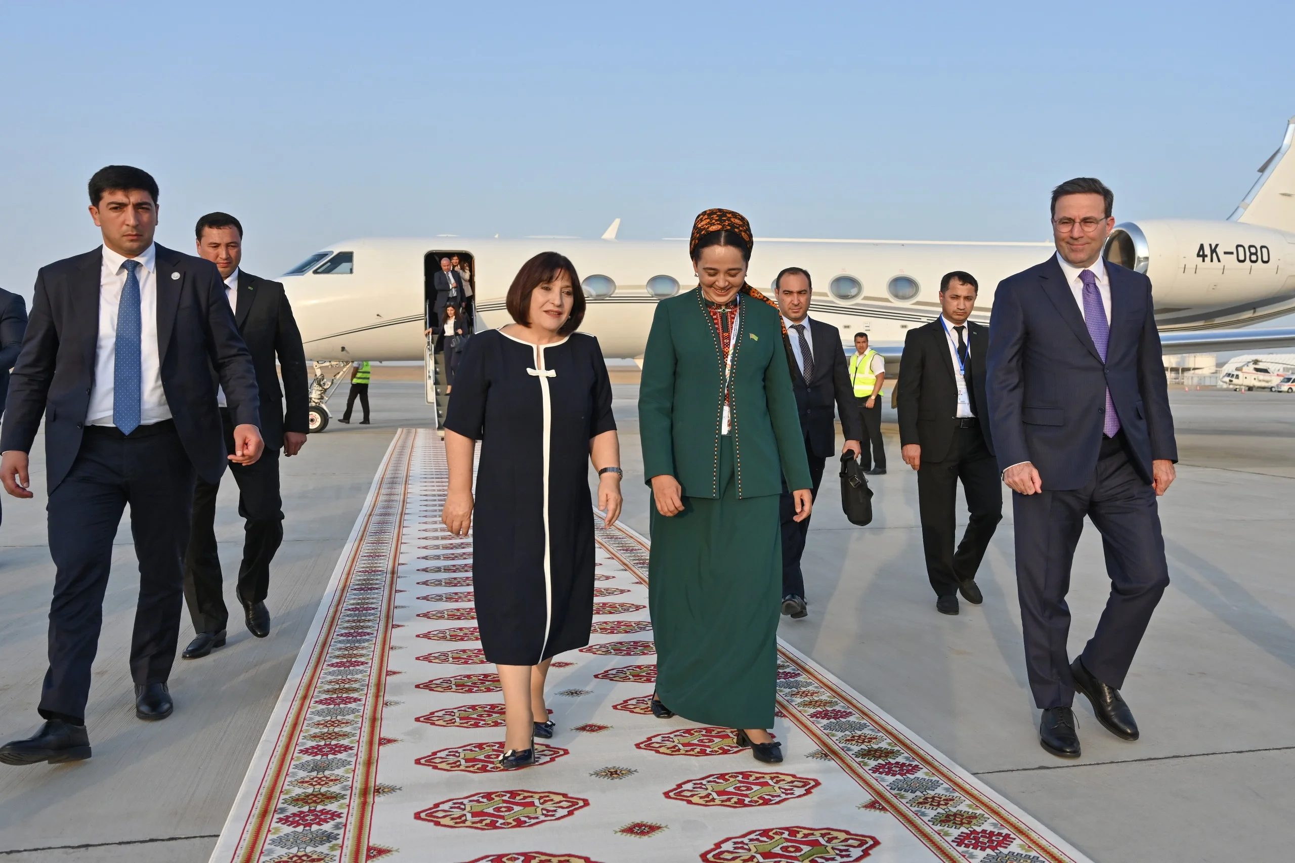 Milli Məclisin sədri Sahibə Qafarova Türkmənistana işgüzar səfərə gəlib