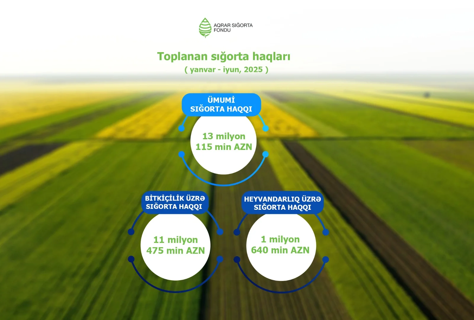 Yanvar-iyun aylarında Aqrar Sığorta Fondu tərəfindən 13 milyon 115 min AZN, yəni ötən ilin eyni dövrünə nisbətdə 18% artıq sığorta haqqı toplanılıb. Bitkiçilik uzrə sığorta haqqı 13%, heyvandarlıq üzrə sığorta haqqı isə 65% artıb.