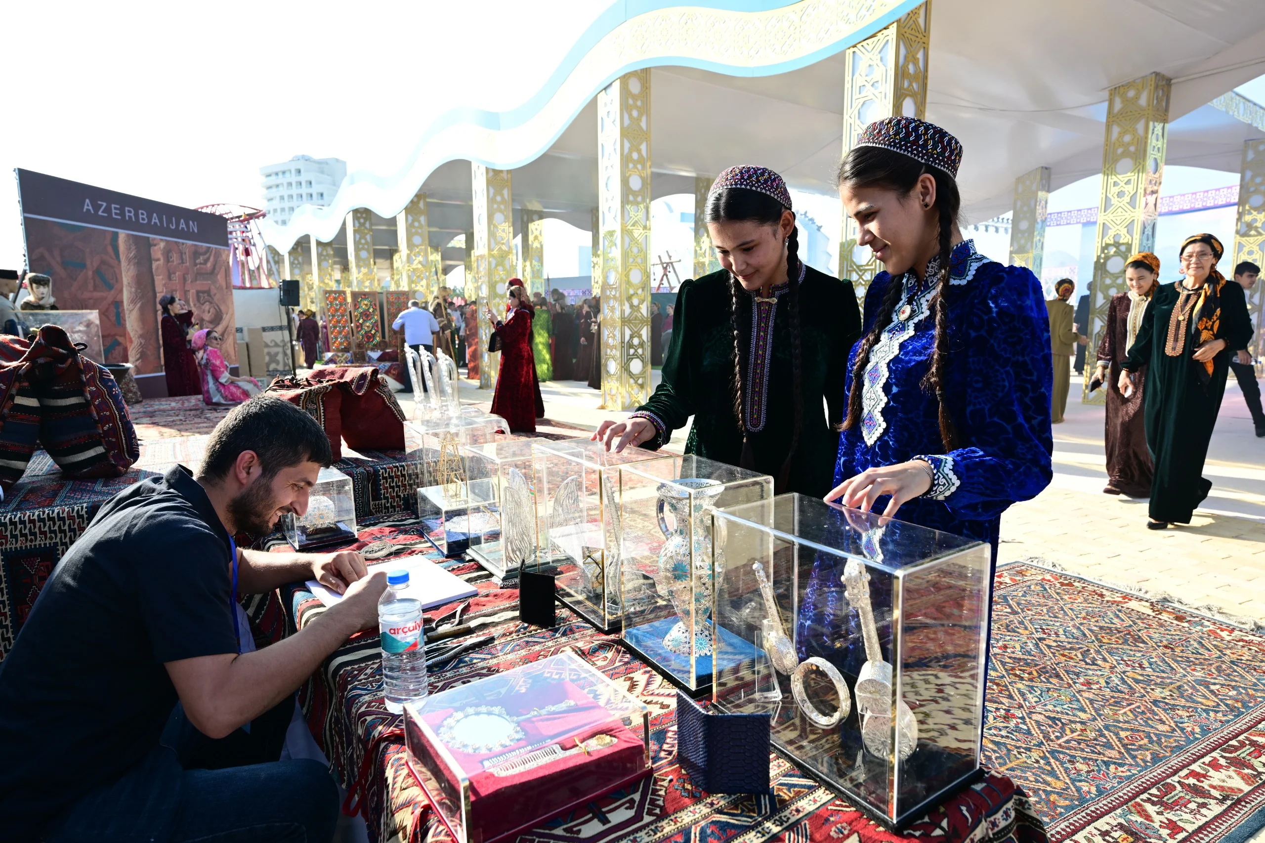 Açılışı keçirilən "Azərbaycanın milli irsinin inciləri” adlı sərgi ziyarətçilərin böyük marağına səbəb olub. Sərgidə Azərbaycan xalçaçılıq ənənələri və müxtəlif xalça məktəblərinə aid nümunələr, milli geyimlər, kəlağayı, şəbəkə və tikmə sənəti inciləri təqdim edilib.