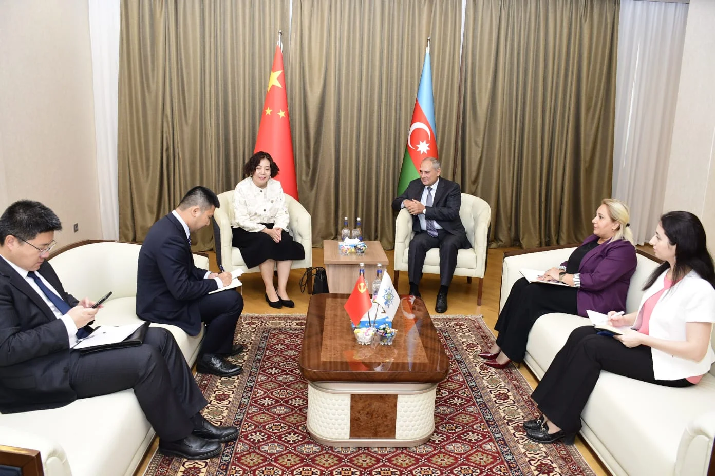 Görüşdə Azərbaycan Respublikasının Prezidenti, Yeni Azərbaycan Partiyasının Sədri İlham Əliyev ilə Çin Xalq Respublikasının Sədri, Çin Kommunist Partiyasının Baş katibi Si Cinpinin birgə fəaliyyəti sayəsində iki ölkə arasında əlaqələrin yüksək inkişaf səviyyəsinə çatdığı qeyd olunub. Prezident İlham Əliyevin cari ilin aprel ayında bu ölkəyə rəsmi dövlət səfəri çərçivəsində Pekində “Azərbaycan Respublikası ilə Çin Xalq Respublikası arasında hərtərəfli strateji tərəfdaşlıq əlaqələrinin qurulması haqqında Birgə Bəyanat”ın imzalanmasının əlamətdar hadisə olduğu və gələcək əməkdaşlıq üçün geniş imkanlar yaratdığı xüsusi vurğulanıb.