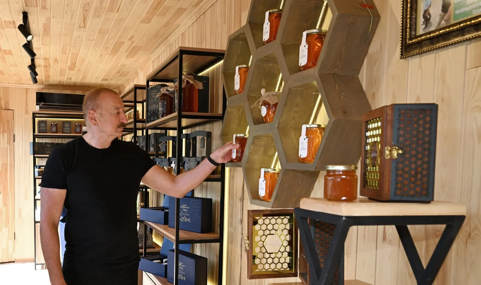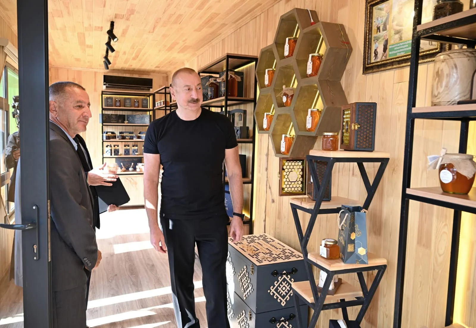 İlham Əliyev “Balland – Kəlbəcər balı, arı və arıçılıq məhsulları mağazası”nın açılışında iştirak edib