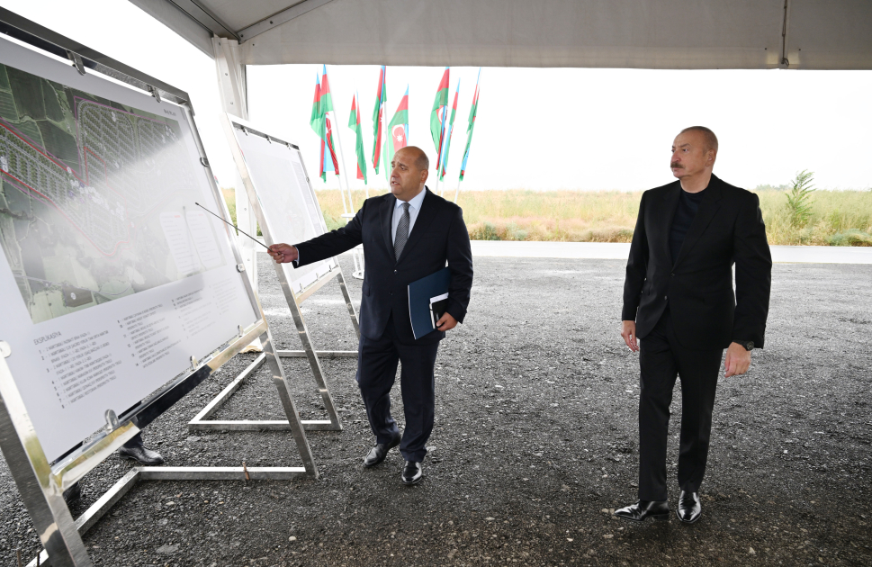 Prezident İlham Əliyev Füzuli rayonunun yeni salınacaq Qaraxanbəyli kəndinin təməlini qoyub