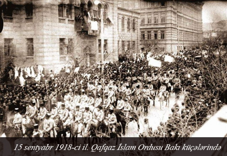 1918-ci il sentyabrın 15-də Qafqaz İslam Ordusu Bakını daşnak-bolşevik işğalından azad etməklə mühüm xilaskarlıq missiyası həyata keçirdi. Bu hadisə Azərbaycan Xalq Cümhuriyyətinə dövlət quruculuğu prosesinə başlamaq imkanı yaratdı. Həmin hadisədən üç il əvvəl isə azərbaycanlı oğullar Çanaqqalada türk qardaşlarının köməyinə çatmış, o torpaqda şəhadətə qovuşmuşdular. Babalarımızın miras qoyduğu bu qardaşlıq sonrakı illərdə yeni məzmunla zənginləşərək bir millət, iki dövlət olan Azərbaycan və Türkiyənin taleyində mühüm amil olub. Sentyabrın 15-i Azərbaycan xalqı üçün mühüm tarixi hadisə və qürur mənbəyidir.