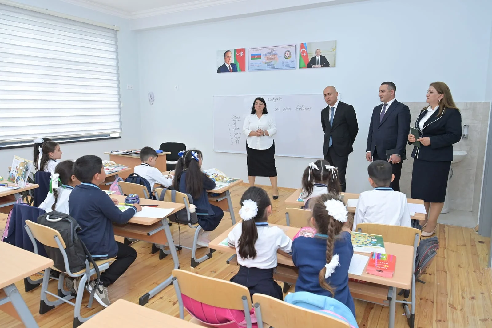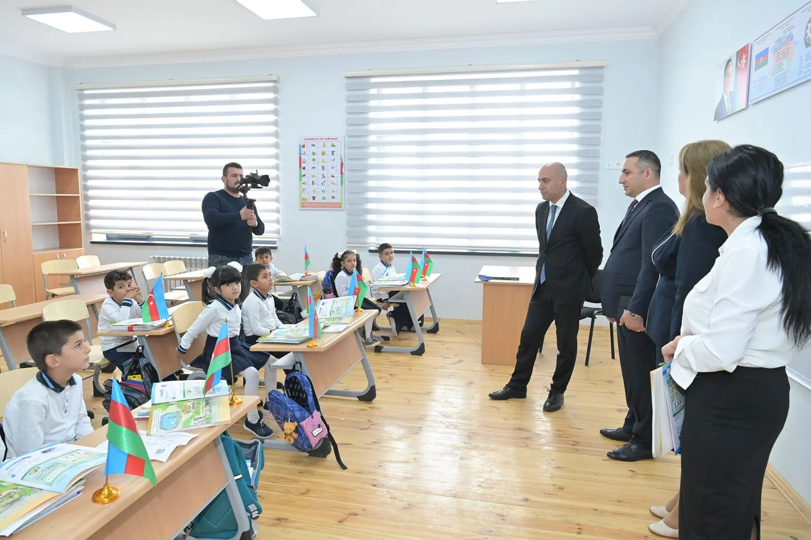 İşğaldan azad edildikdən sonra bu il ilk dəfə tədris prosesinə başlayan məktəbdə nazir dərs gedişatını izləyib, şagird və müəllim heyəti ilə görüşərək onlarla söhbət aparıb.