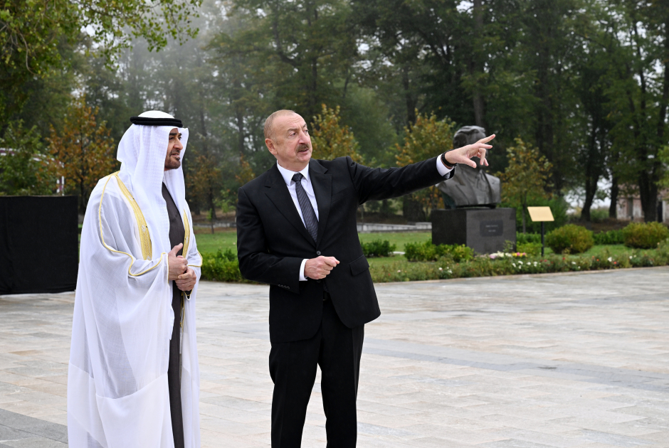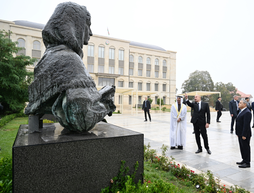 Sentyabrın 16-da Azərbaycan Respublikasının Prezidenti İlham Əliyev və Birləşmiş Ərəb Əmirliklərinin Prezidenti Şeyx Məhəmməd bin Zayed Al Nəhyan Şuşada Azərbaycanın tanınmış şəxsiyyətləri Natəvanın, Bülbülün və Üzeyir Hacıbəylinin erməni işğalçıları tərəfindən güllələnmiş heykəllərinə baxıblar.
