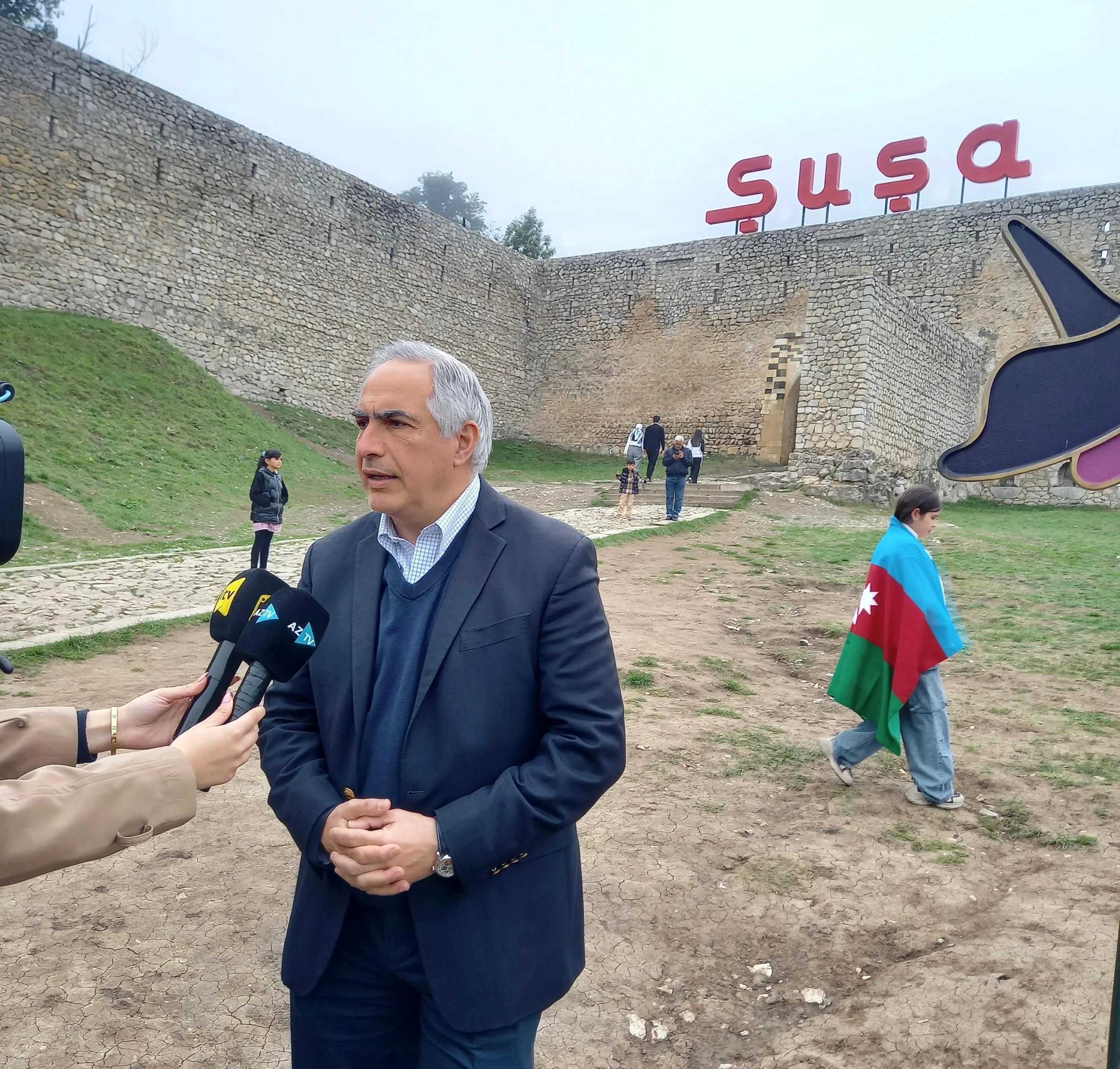 Şuşa ilə tanışlıq Şəhər Meydanından başlayıb. Senatorlara burada qoyulmuş Azərbaycanın görkəmli mədəniyyət xadimləri Xurşidbanu Natəvanın, Bülbülün, Üzeyir Hacıbəylinin heykəllərinin işğal dövründə ermənilər tərəfindən güllələnməsi barədə məlumat verilib.