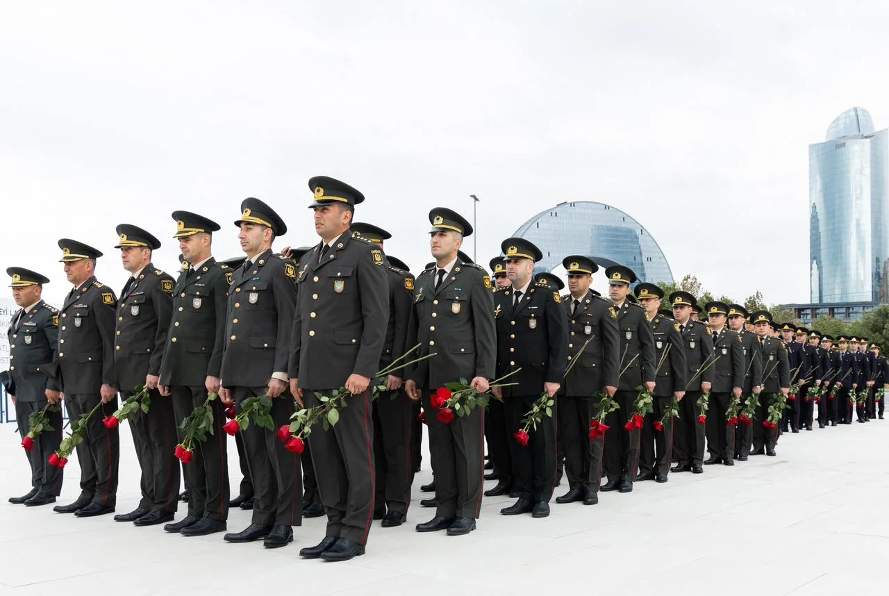 Daxili İşlər Nazirliyinin gənc polis əməkdaşları və hərbi qulluqçuları 44 günlük Vətən müharibəsində respublikamızın ərazi bütövlüyünün qorunması, bərpası və torpaqlarımızın işğaldan azad edilməsi uğrunda gedən döyüşlərdə şəhidlik zirvəsinə ucalan Vətən övladlarının xatirəsini ehtiramla yad ediblər. Şəxsi heyət xatirə daşının önünə gül dəstələri düzüb.
