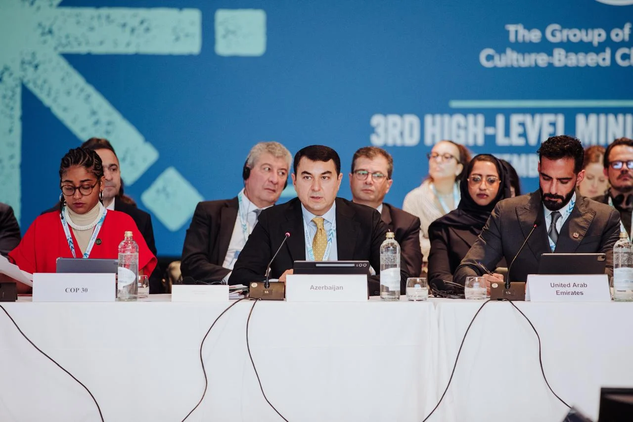 Azərbaycanın mədəniyyət naziri Adil Kərimli UNESCO-nun MONDIACULT 2025 konfransı çərçivəsində keçirilən “Mədəniyyətə əsaslanan İqlim Fəaliyyəti üzrə Dostlar Qrupu”nun Üçüncü Yüksək Səviyyəli Nazirlər Dialoqunda çıxış edib