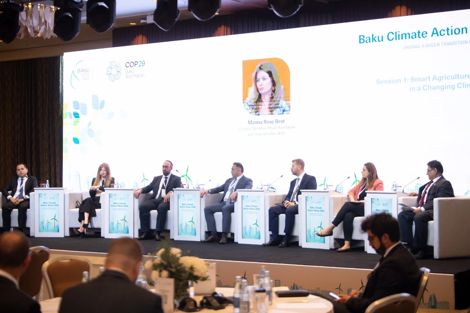 COP29-da razılaşdırılmış ambisiyalı iqlim öhdəlikləri və Bakı Maliyyə Məqsədi üzrə mühüm nailiyyətlərə əsaslanan Bakı İqlim Fəaliyyəti Həftəsi (BCAW) çərçivəsində panel sessiyalar davam edir. Bakı İqlim Fəaliyyəti Həftəsinin 3-cü günü “İqlim dayanıqlığının sektorlar üzrə gücləndirilməsi – kənd təsərrüfatı, su, nəqliyyat, ağıllı şəhərlər, iqlim fəaliyyətində qadınların liderliyi” mövzusuna həsr olunub.
