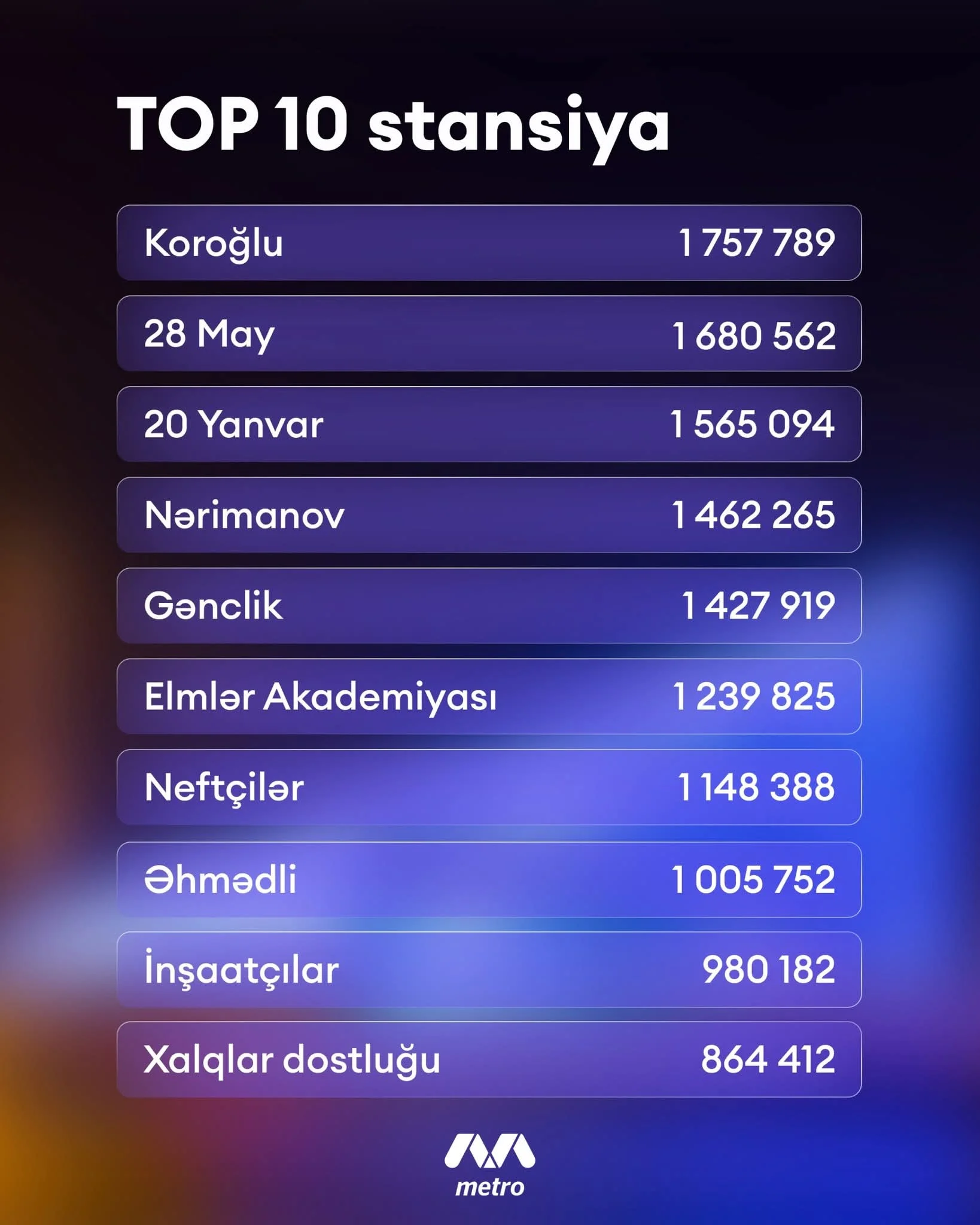 Bu statistika bir daha göstərir ki, sərnişinlər güvənib metroya üstünlük verirlər.