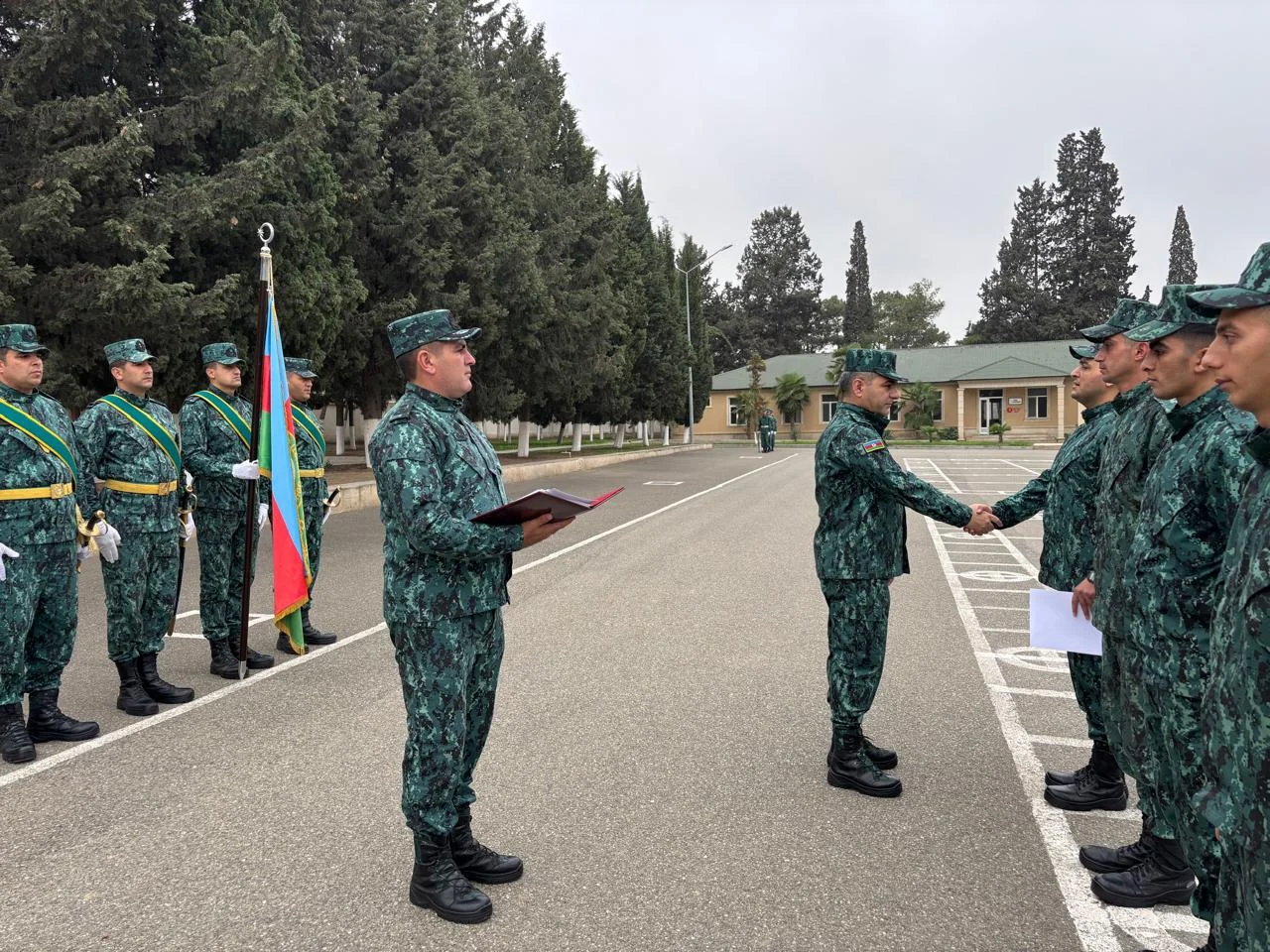 Hərbi hissələrin Döyüş Bayrağının sıra meydanına gətirilməsi ilə başlayan tədbirlərdə Dövlət Himni səsləndirilmiş, Ümummilli Lider Heydər Əliyevin və şəhidlərin əziz xatirəsi bir dəqiqəlik sükutla yad edilmişdir.