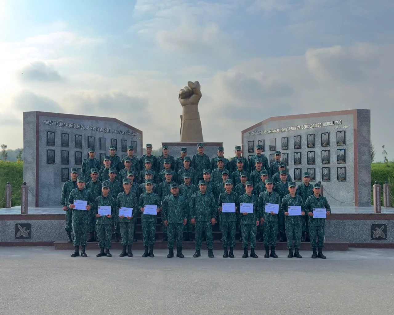 Xidməti borclarını başa vuraraq Silahlı Qüvvələrin ehtiyatına buraxılan müddətli həqiqi hərbi xidmət hərbi qulluqçularına Vətənə sədaqətlə xidmət etdiklərinə və qarşıya qoyulmuş tapşırıqları nümunəvi şəkildə yerinə yetirdiklərinə görə təşəkkür edilmişdir.