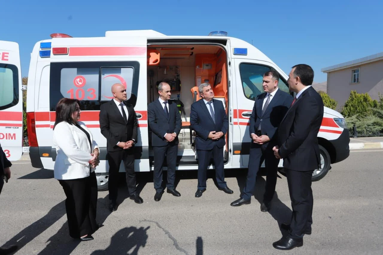 Səfərin birinci günü qonaqlar Hemodializ Mərkəzi və Psixoloji Sağlamlıq Mərkəzinin fəaliyyətə başlaması münasibətilə keçirilmiş tədbirdə iştirak edib, eyni zamanda Təcili Tibbi Yardım Xidmətinin inzibati binasına baş çəkərək xidmətin daxili təchizatı yenilənmiş avtomobillərinə baxıb, çağrı mərkəzində quraşdırılmış proqram təminatı ilə tanış olublar.