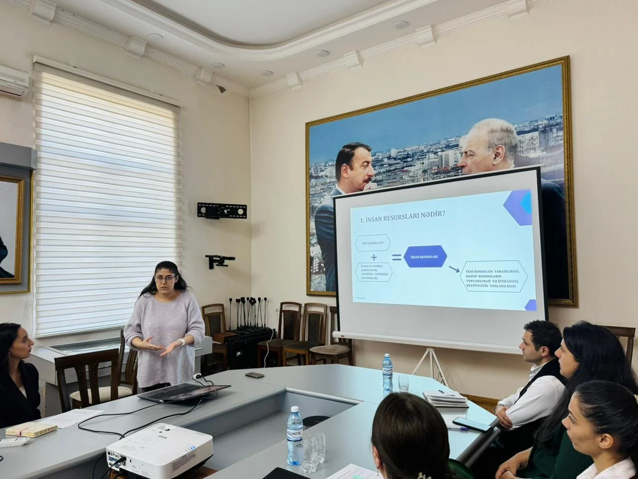 Qaçqınların və Məcburi Köçkünlərin İşləri üzrə Dövlət Komitəsinin struktur bölmələrinin rəhbərləri və müavinləri üçün “Dövlət qulluğunda rəhbər vəzifəli şəxslər üçün idarəetmə sahəsində, o cümlədən insan resurslarının idarəedilməsi” mövzusunda təlim keçirilib. Dövlət İmtahan Mərkəzinin (DİM) İstedadın psixometrik diaqnostikası və maarifləndirmə sektorunun müdiri Sevinc Məmmədova tərəfindən keçirilən təlimdə iştirakçılara insan resurslarının idarəedilməsi anlayışı və onun əsas elementləri izah edilib. Sonra liderlik üslubları və uğurlu rəhbərliyin meyarları müzakirə olunub. Dünyada tətbiq olunan məşhur modellərə əsasən qərarvermə üsulları, transformasiya liderliyinin əsas xüsusiyyətləri və uğursuz liderliyə gətirə biləcək səbəblər təqdim edilib. Tədbir, iştirakçıların peşəkar biliklərini artırmaq və xidməti fəaliyyətin səmərəli idarə olunmasını təmin etmək məqsədini daşıyıb. Təlimin sonunda iştirakçıların sualları cavablandırılıb, davranış strategiyaları və həll yolları müzakirə edilib.