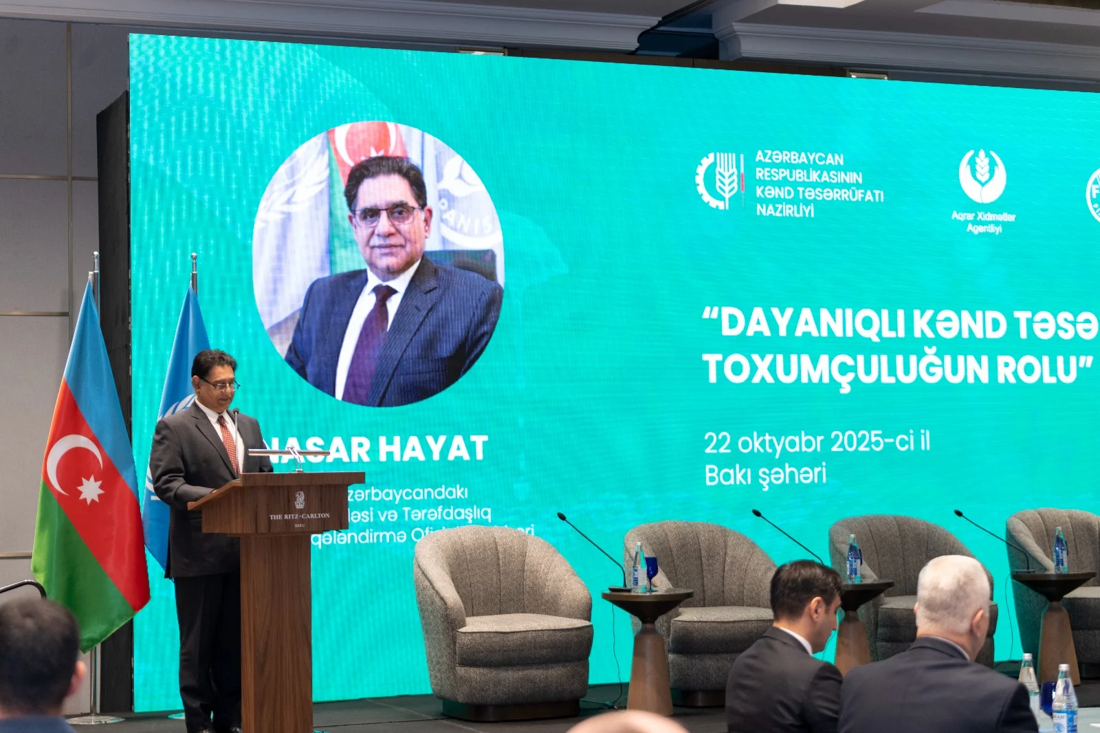 “FAO-nun qlobal ərzaq təhlükəsizliyinə sədaqətinin 80 illiyi qeyd olunduğu bir vaxtda bizim Azərbaycan hökuməti ilə əməkdaşlığımız toxumçuluq sahəsinin inkişafı, fermerlərin keyfiyyətli və sertifikatlaşdırılmış toxumlara çıxışının genişləndirilməsi və kənd yerlərində dayanıqlı inkişafın sürətləndirilməsi istiqamətlərində əhəmiyyətli nəticələr verməkdədir. Birgə icra olunan layihələr, heç kəsi kənarda qoymadan, ölkədə müasir və rəqabətqabiliyyətli toxumçuluq sektorunun formalaşdırılmasına töhfə verir və milli ərzaq təhlükəsizliyinin möhkəmləndirilməsinə xidmət edir,” – deyə Nasar Hayat vurğulayıb.