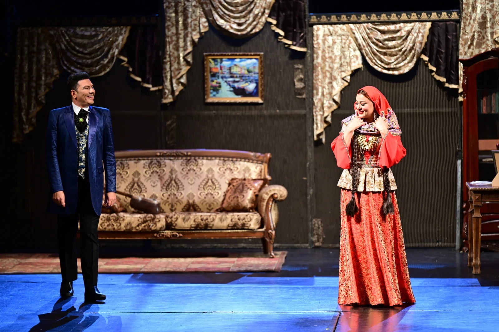 Tamaşanın quruluşçu rejissoru Xalq artisti Mərahim Fərzəlibəyov, quruluşçu rəssamı Əməkdar mədəniyyət işçisi İlham Elxanoğlu, musiqi tərtibatçısı Həmid Kazımzadədir. Səhnə əsərində Xalq artistləri Əli Nur, Laləzar Mustafayeva, Hacı İsmayılov, Kazım Abdullayev, Əməkdar artistlər Elşən Cəbrayılov, Vəfa Rzayeva, aktyorlar Rüstəm Rüstəmov və Elçin Əfəndi çıxış edirlər.