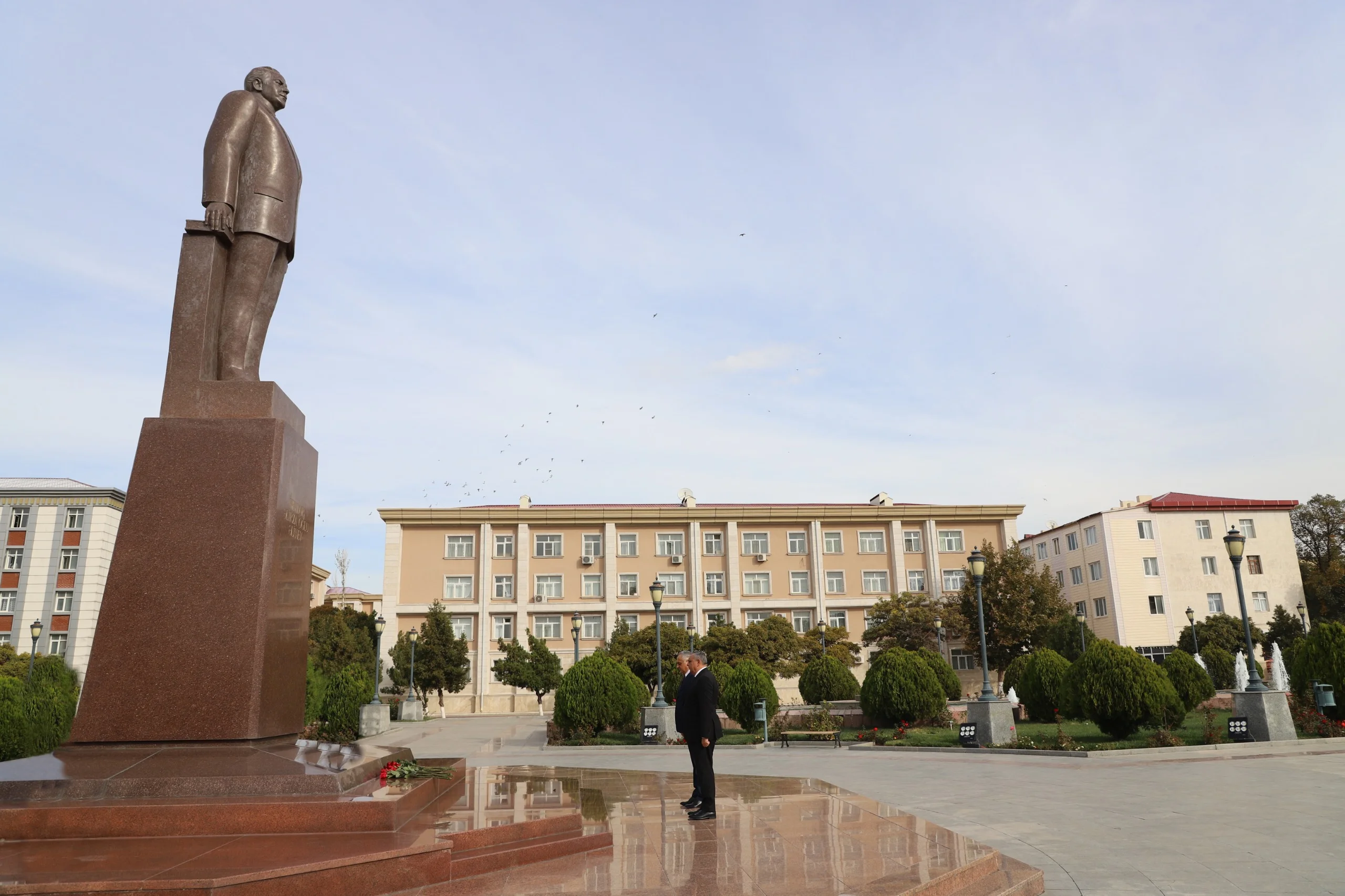 Qəbuldan əvvəl ümummilli lider Heydər Əliyevin abidəsi ziyarət edilərək önünə gül dəstəsi qoyulub, əziz xatirəsi ehtiramla yad edilib.