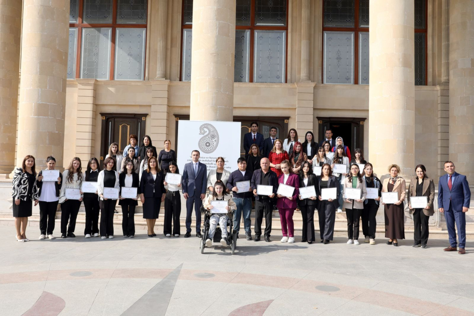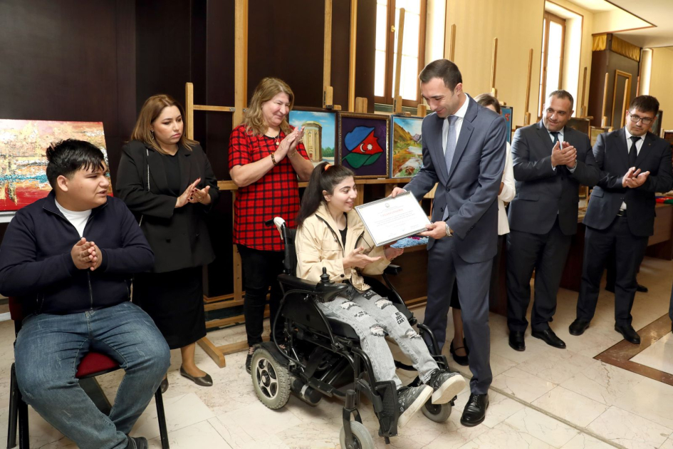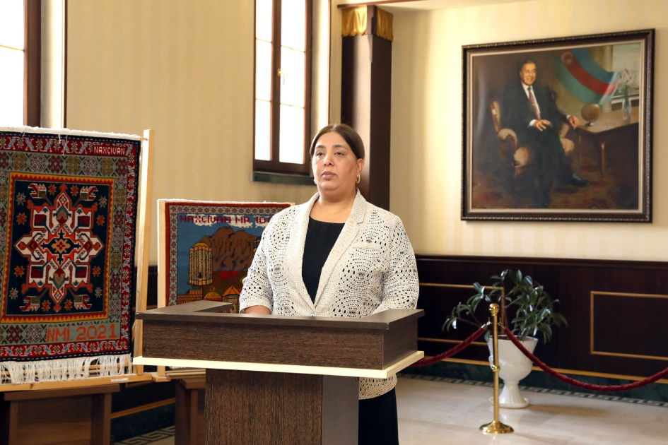 “Konstitusiya və Suverenlik İli” çərçivəsində Naxçıvan şəhərindəki Heydər Əliyev Sarayında keçirilən məhdud fiziki imkanlı şəxslərin və istedadlı qadınların rəsm və əl işlərindən ibarət sərgi-satış yarmarkasının bağlanış tədbiri olub.
