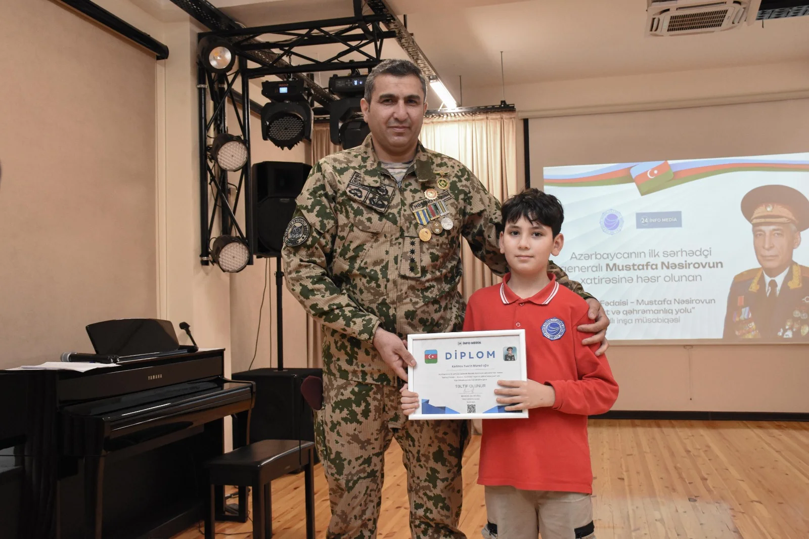 Qeyd edək ki, tədbir çərçivəsində ötən il Mustafa Nəsirovun xatirəsinə həsr olunan rəsm müsabiqəsinin qalibi Fatimə Qurbanovanın çəkdiyi rəsmlər nümayiş olunub, “Qəhrəmanlarımızı Tanıyaq” layihəsi çərçivəsində şagirdlərə ilk sərhədçi generala həsr olunan bukletlər paylanıb və şagirdlər işğaldan azad edilən ərazilərdə xidmət göstərən əsgərlərimizə məktublar yazıblar.