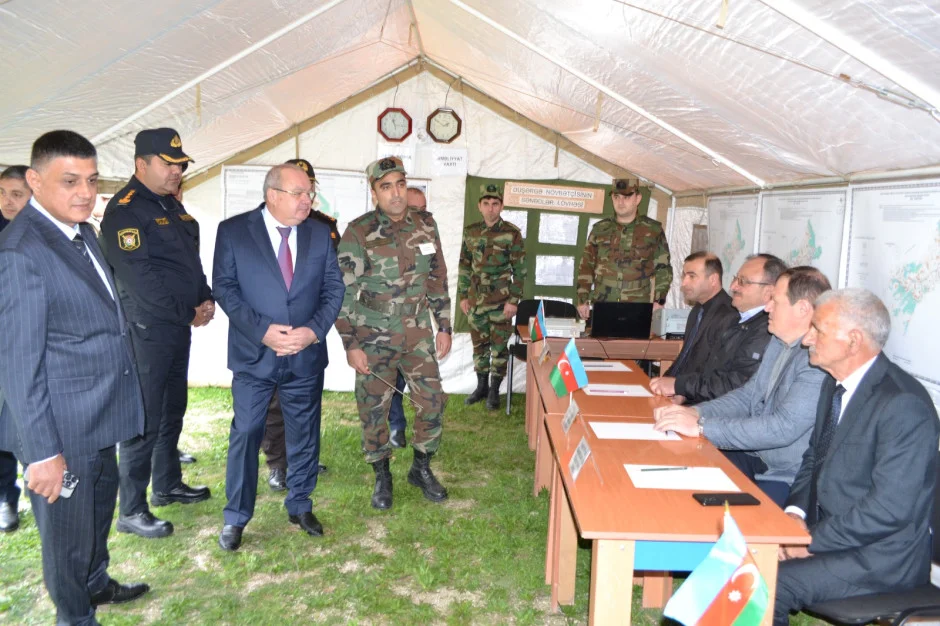 Əvvəlcə, Yardımlı rayonunda təlim üçün nəzərdə tutulmuş qərargahda müşavirə keçirilib.