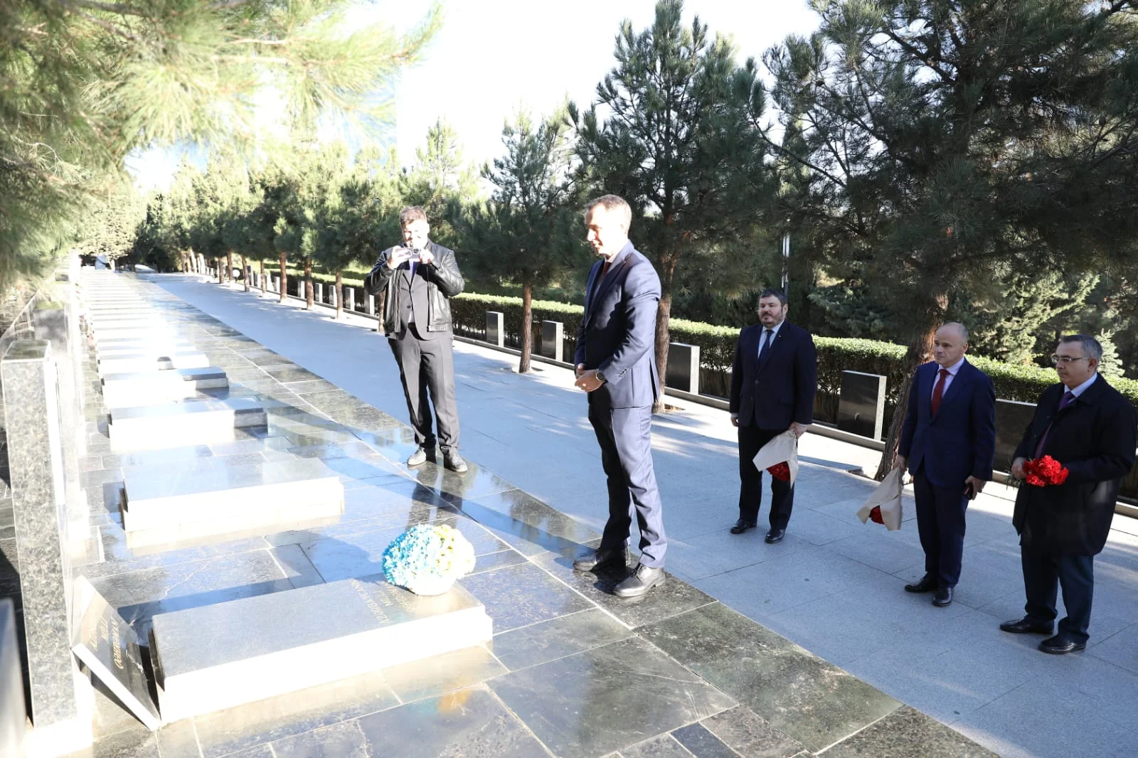 Daha sonra Ukrayna nümayəndə heyəti Şəhidlər Xiyabanına gələrək, Azərbaycanın azadlığı və ərazi bütövlüyü uğrunda canlarından keçmiş qəhrəman Vətən övladlarının, həmçinin Ukrayna əsilli Azərbaycanın Milli Qəhrəmanı Viktor Seryoqinin xatirəsini ehtiramla yad edib, məzarları üzərinə güllər qoyublar.