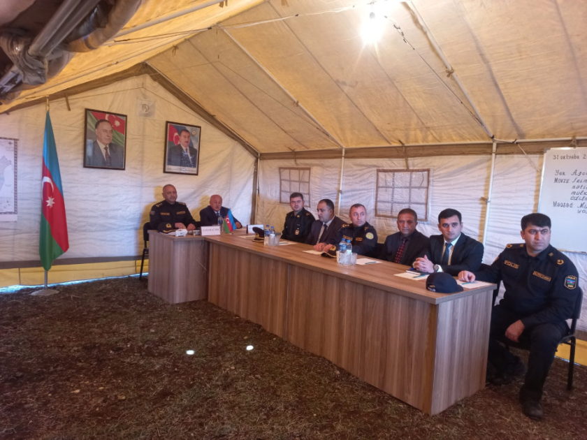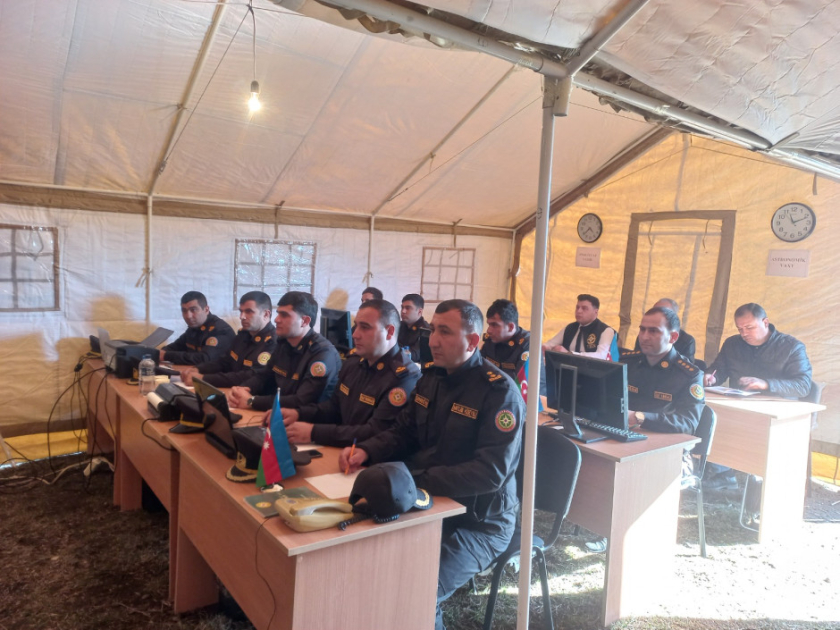 Tədbirdə əvvəlcə şərti fövqəladə hal zamanı “əhalinin köçürülməsi” üçün hazırlanmış çadır şəhərciyinə baş çəkilib, mülki müdafiə dəstələrinə sıra baxışı keçirildikdən sonra təlim üçün nəzərdə tutulmuş qərargahda müşavirə keçirilib.
