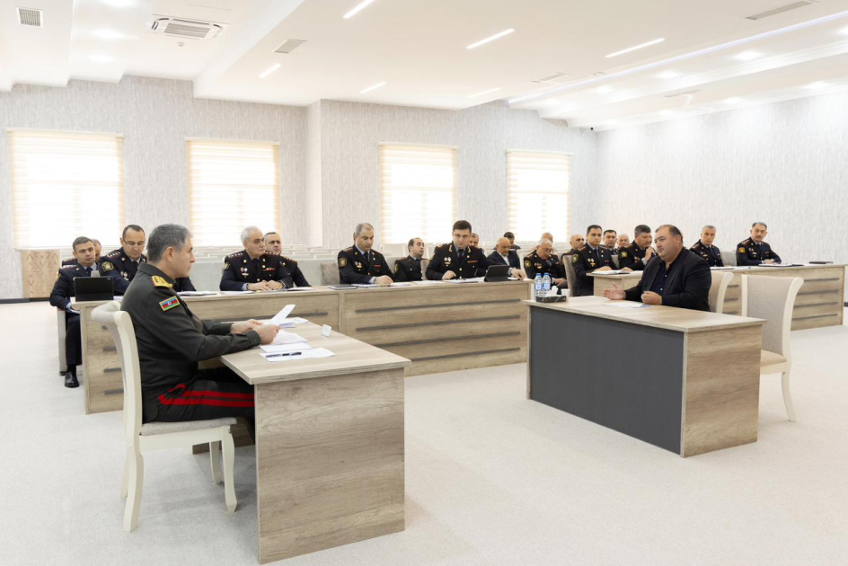 Səfər çərçivəsində general-polkovnik V.Eyvazov polis və daxili qoşunlarda xidmət etmək arzusunda olan gənclərin sıra baxışını keçirib.