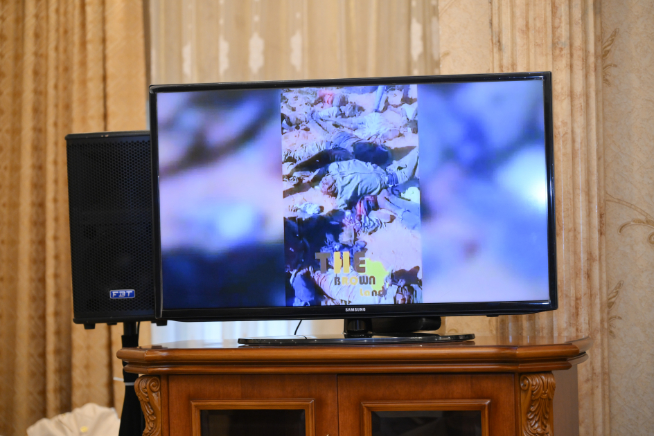 Konfrans zamanı Sudanda törədilən terror və qətliamı əks etdirən videoçarx nümayiş etdirilib. Kadrlarda silahlı qruplar tərəfindən güllələnən qadınlar, öldürülən uşaqlar, ağaclardan asılmış insanlar, yandırılmış evlər və xəstəxanada qətlə yetirilmiş xəstələr görünür. Görüntülərdən aydın olur ki, qurbanların hamısı dinc əhalidir.