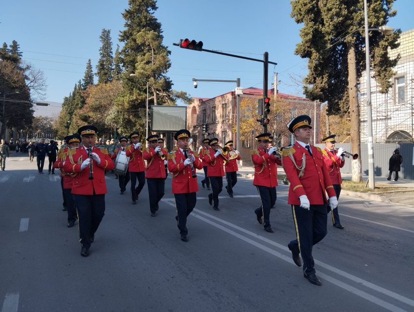 Xankəndi şəhərində, Ağdərə və Xocalı rayonlarında Bərpa, Tikinti və İdarəetmə Xidmətinin ictimaiyyətlə əlaqələr şöbəsindən AZƏRTAC-a verilən məlumata görə, şəhərin mərkəzi küçəsində hərbi orkestrlərin müşayiəti ilə təşkil olunan yürüş bayram ab-havası yaradıb. Azərbaycan Silahlı Qüvvələrinin hərbi orkestri tərəfindən yürüş boyu vətənpərvər musiqilər səsləndirilib.
