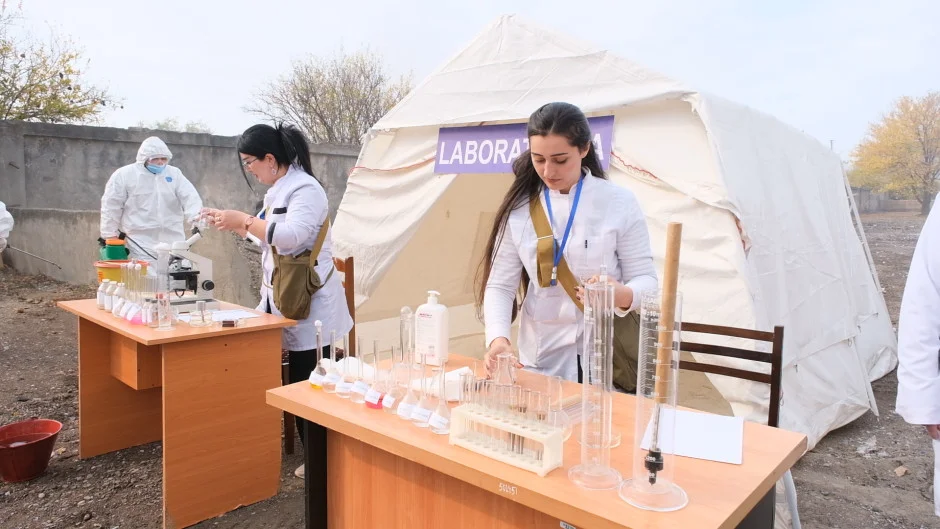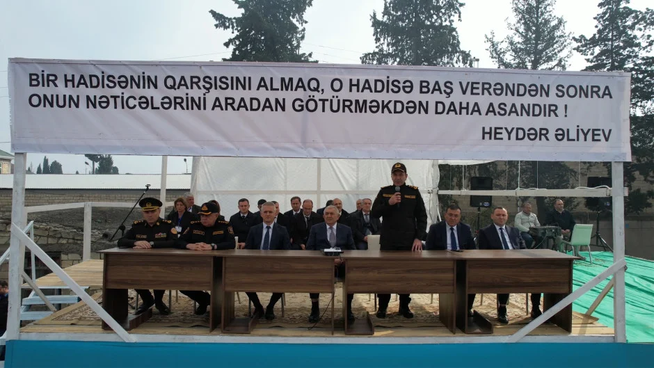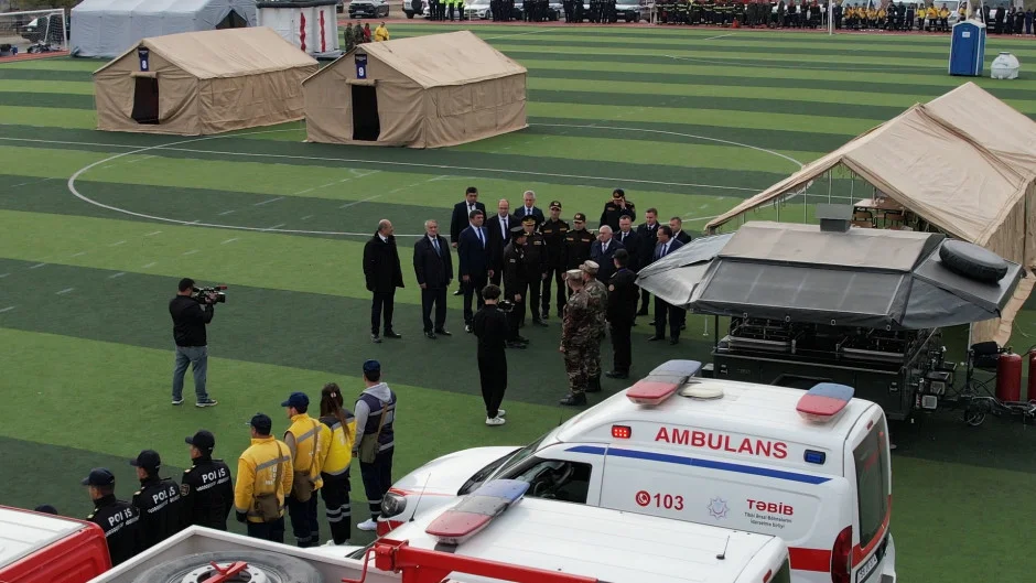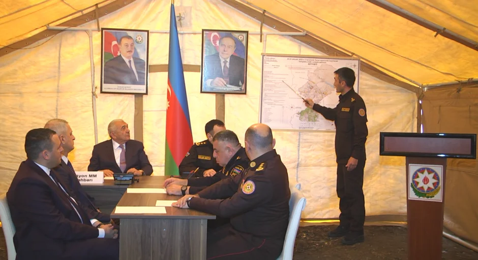 Tədbirdə, əvvəlcə şərti fövqəladə hal zamanı “əhalinin köçürülməsi” üçün hazırlanmış çadır şəhərciyinə baş çəkilib, mülki müdafiə dəstələrinə sıra baxışı keçirildikdən sonra təlim üçün nəzərdə tutulmuş qərargahda müşavirə keçirilib.