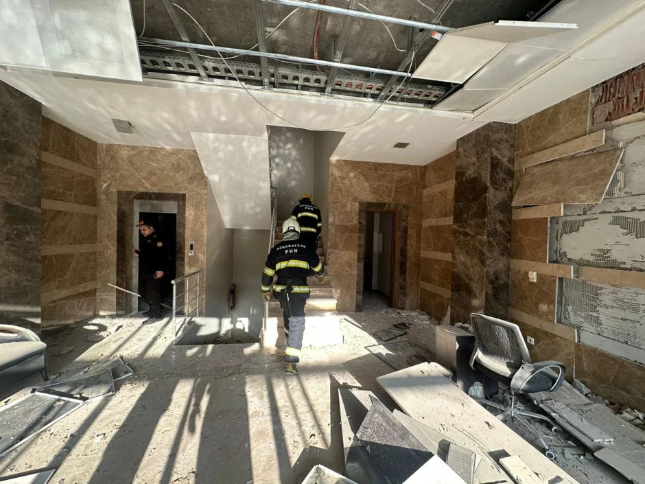 Hadisə yerində əməliyyat şəraiti qiymətləndirilərkən beşmərtəbəli ofis binasında yanğınla müşayiət olunmayan partlayışın baş verdiyi və dağıntıların yarandığı müəyyən edilib.