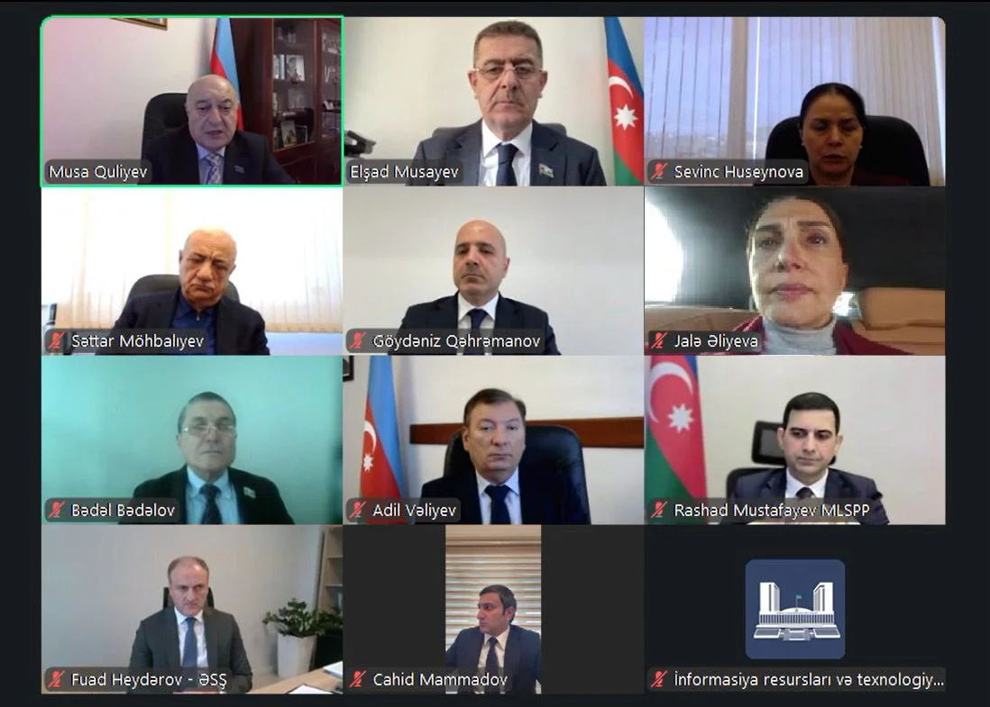 Onlayn iclasda Əmək və sosial siyasət komitəsinin sədr müavini Elşad Musayev, üzvləri Jalə Əliyeva, Nigar Məmmədova, Sevinc Hüseynova, Səttar Möhbalıyev, Ziyad Səmədzadə, Əziz Ələkbərov, Soltan Məmmədov, Bədəl Bədəlov, Göydəniz Qəhrəmanov və digər rəsmi şəxslər iştirak ediblər.