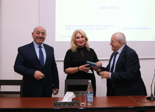 Daha sonra AMEA nəzdində RSXM-nin baş direktoru, AMEA-nın müxbir üzvü, professor Qurban Yetirmişli AMEA nəzdində RSXM-nin 2025- ci il üzrə elmi və elmi-təşkilati fəlaiyyətinə dair hesabatını təqdim edib. RSXM-nin baş direktoru Mərkəzdə 2025-ci il ərzində aparılmış kompleks seysmoloji-geofiziki-geodinamik və geokimyəvi tədqiqatlar, əldə olunmuş nəticələr, yerli və xarici təşkilatlarla əlaqələr və universitetlərlə aparılan birgə əməkdaşlıq məsələləri, seysmologiya sahəsində aparılan elmi tədqiqat işlərinə dair beynəlxalq indeksli jurnallarda mərkəz əməkdaşlarının dərc olunmuş məqalələri, elmmetrik bazalardakı vəziyyət, kadr potensialının gücləndirilməsi sahəsində görülən işlərə dair geniş təqdimatla çıxış edib.